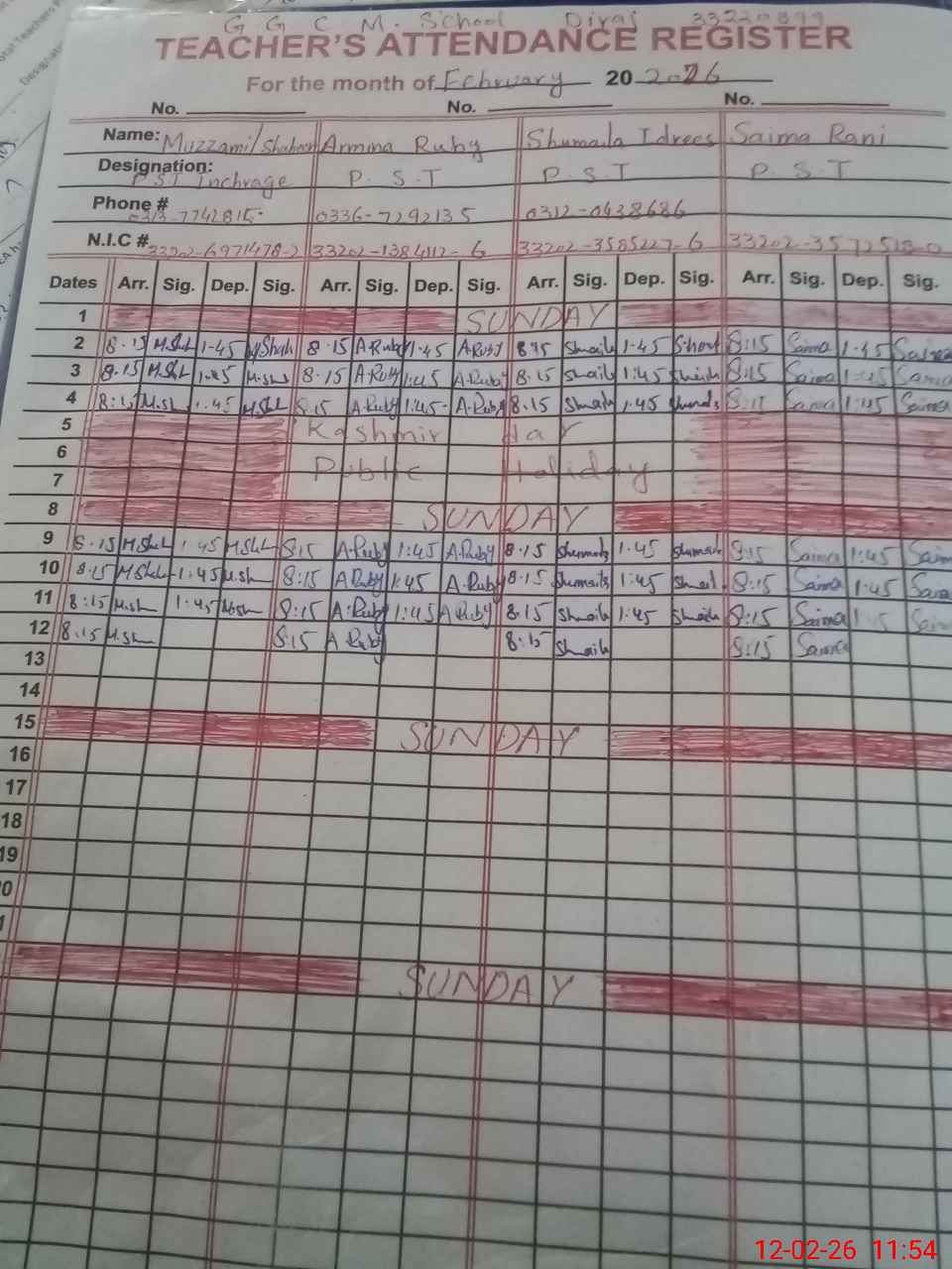 | Name: MU**** SH**** Designation: (School Headmaster's/Headmistress's) PST. (H M Phone/Cell Number: 03**** |