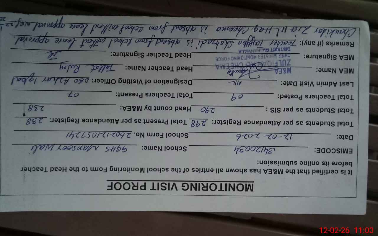 | EMIS Code: 34120034 | Name of School: GGHS MANSOOR WALI | |||