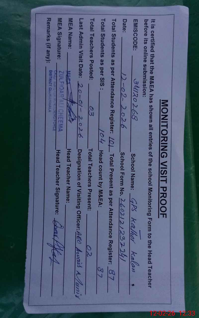 | EMIS Code: 34120268 | Name of School: GPS KATHOR KALAN | |||