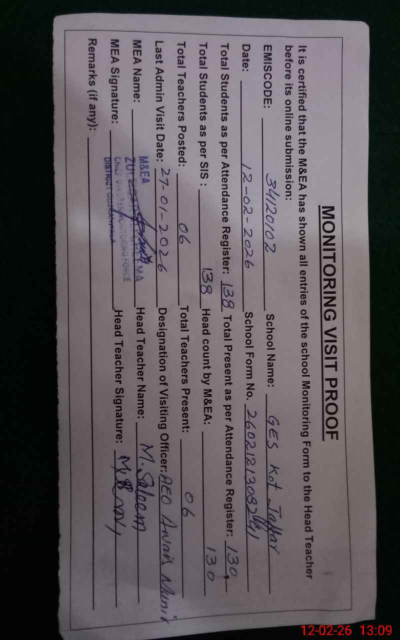 | EMIS Code: 34120102 | Name of School: GES KOT JAFFAR | |||
