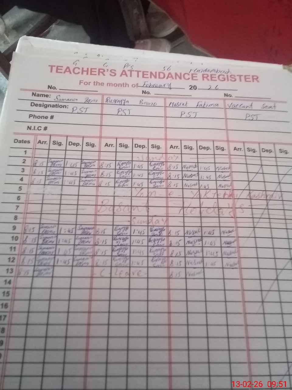 | Name: Sa**** Iq**** Designation: (School Headmaster's/Headmistress's) PST Phone/Cell Number: 03**** |