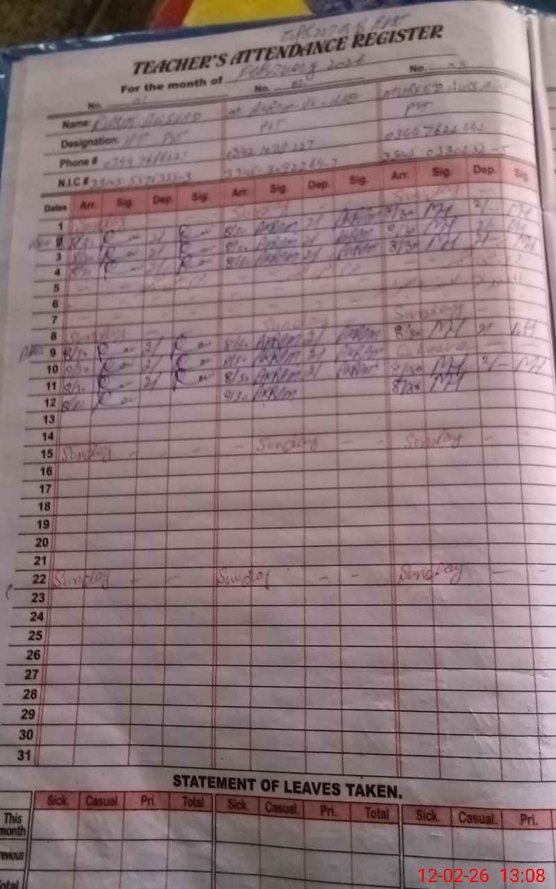 | Name: RI**** AL**** SH**** Designation: (School Headmaster's/Headmistress's) PST Phone/Cell Number: 03**** |