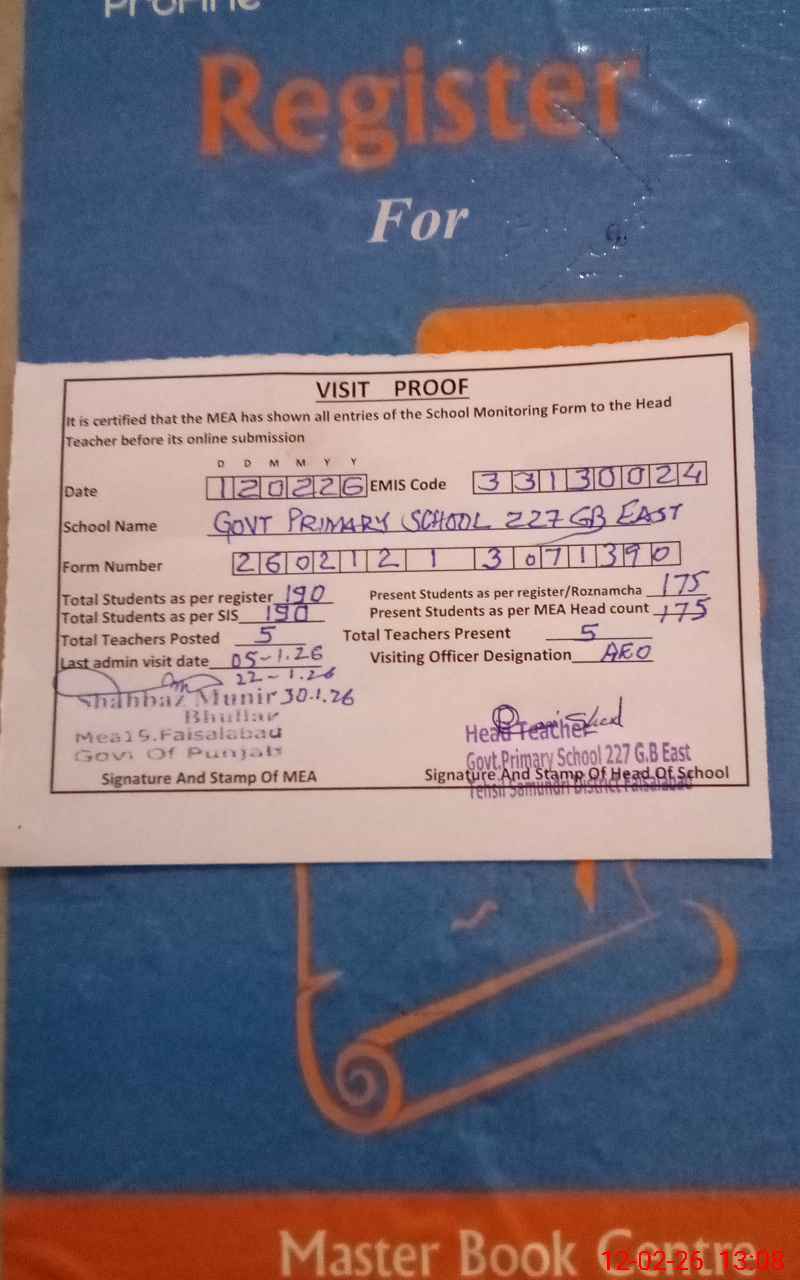 | EMIS Code: 33130024 | Name of School: GPS CHAK 227 GB EAST SAMUNDRI | |||