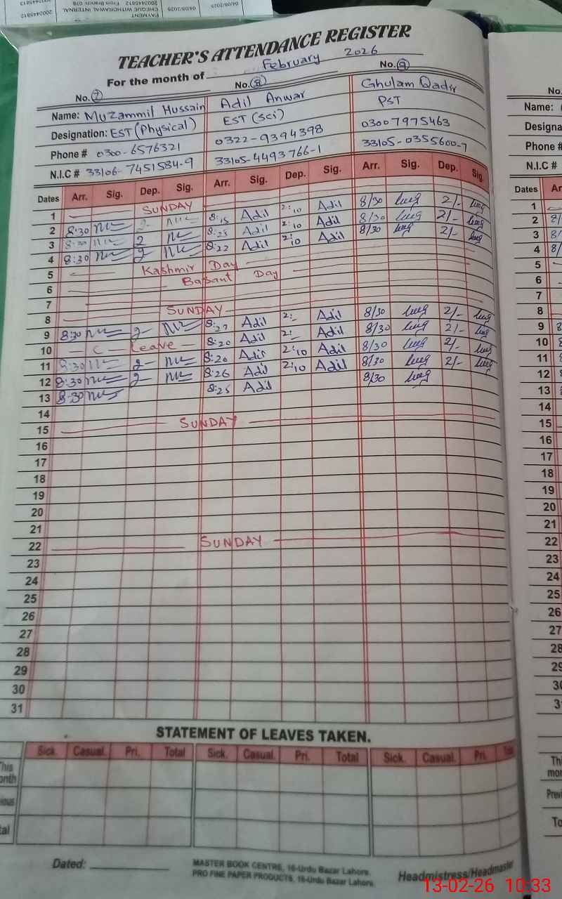| Name: MU**** AM**** Designation: (School Headmaster's/Headmistress's) EST (GENERAL) Phone/Cell Number: 03**** |