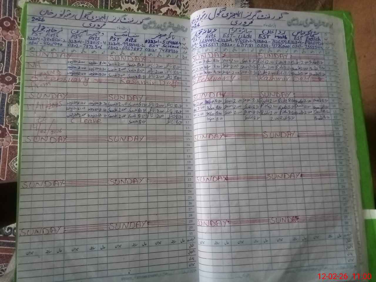 | Name: Sh**** Ab**** Designation: (School Headmaster's/Headmistress's) EST English Phone/Cell Number: 03**** |