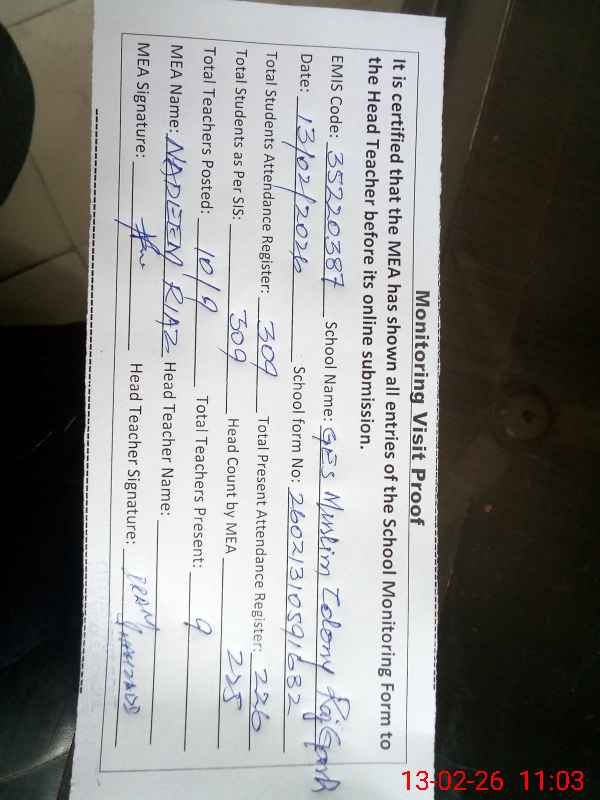 | EMIS Code: 35220387 | Name of School: GES MUSLIM COLONY RAJ GARH (EX-MCL) | |||