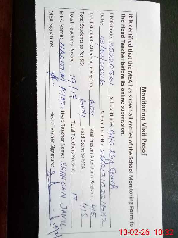 | EMIS Code: 35220561 | Name of School: GGHS RAJ GARH (EX-MCL) | |||