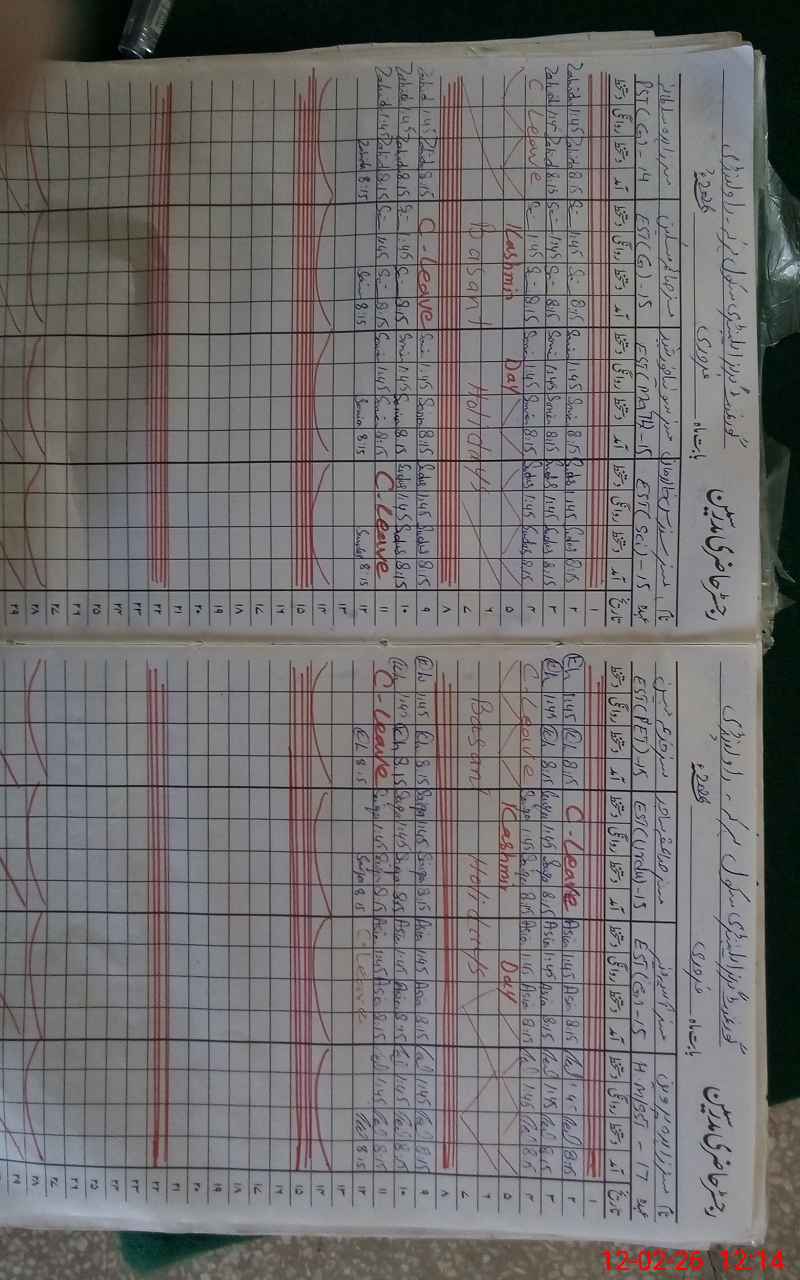| CNIC | Full Name | Designation | R/C | Absence During Last Calender Month |