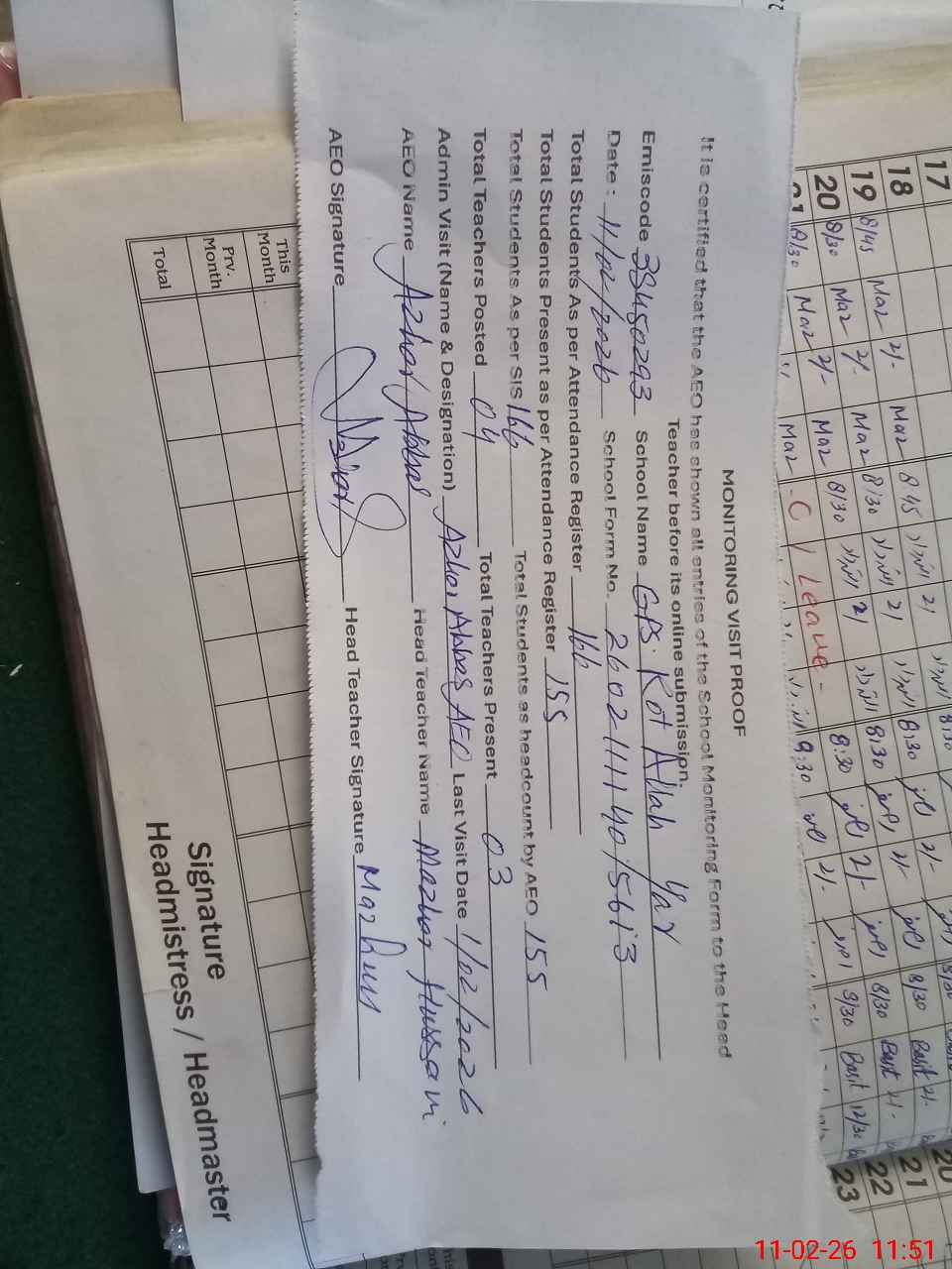 | EMIS Code: 38450293 | Name of School: GPS KOT ALLAH YAR | |||