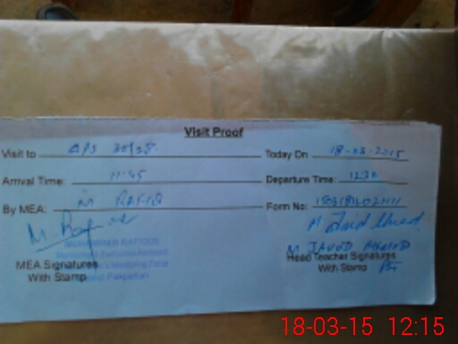 | Attendance Register | Head Teacher | MEA with School | Visit Proof |