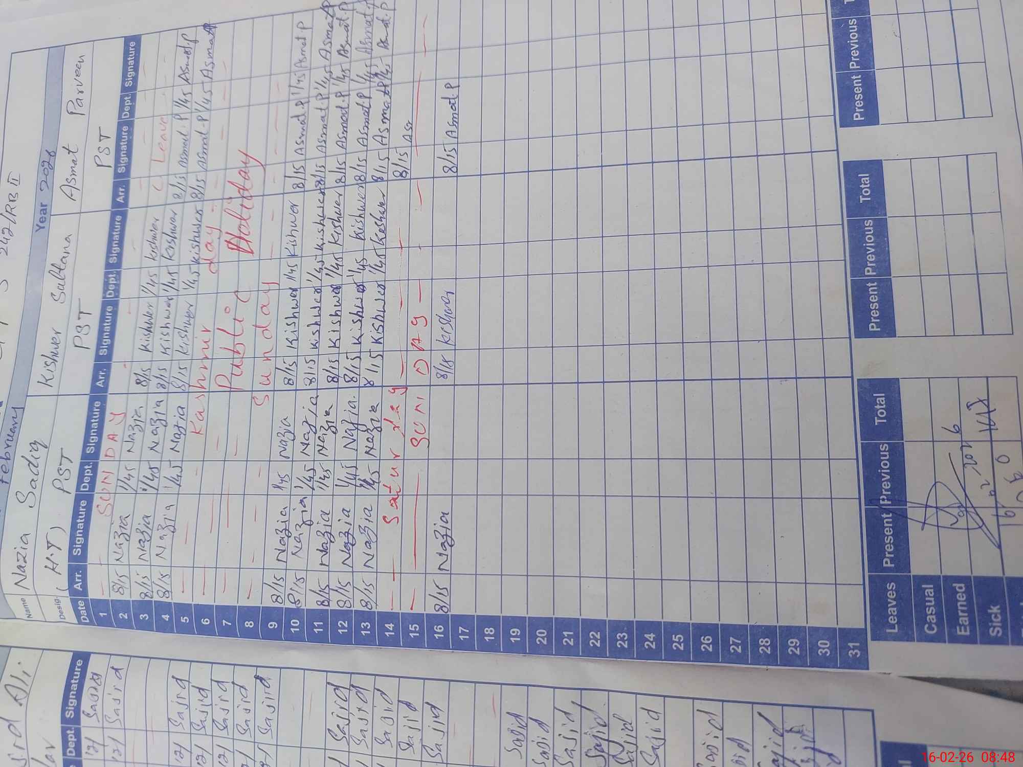 | 35**** | Ai**** Sa**** | PST Science/Maths | Regular | 0 | 0 | 0 | 0 | 0 | 0 | 0 | 0 | 0 | Maternity |