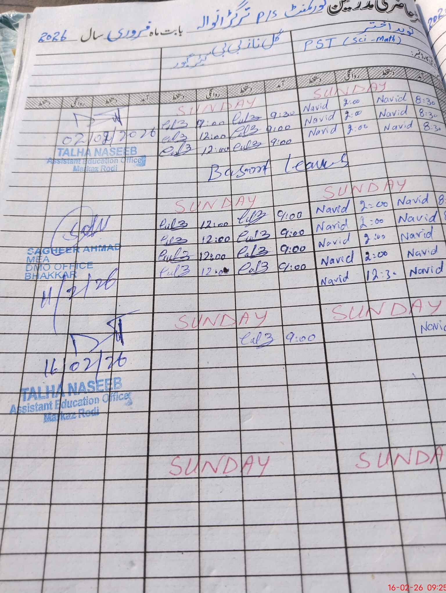 | District: BHAKKAR | Tehsil: KALLUR KOT | Markaz: RODI - MALE | Level: Primary | |