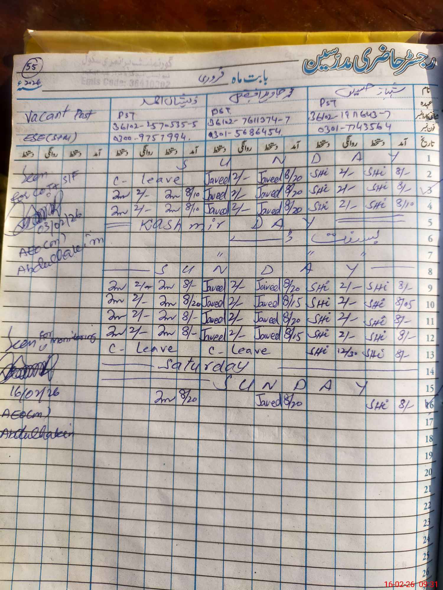 | Name: SH**** HU**** Designation: (School Headmaster's/Headmistress's) PST Phone/Cell Number: 03**** |