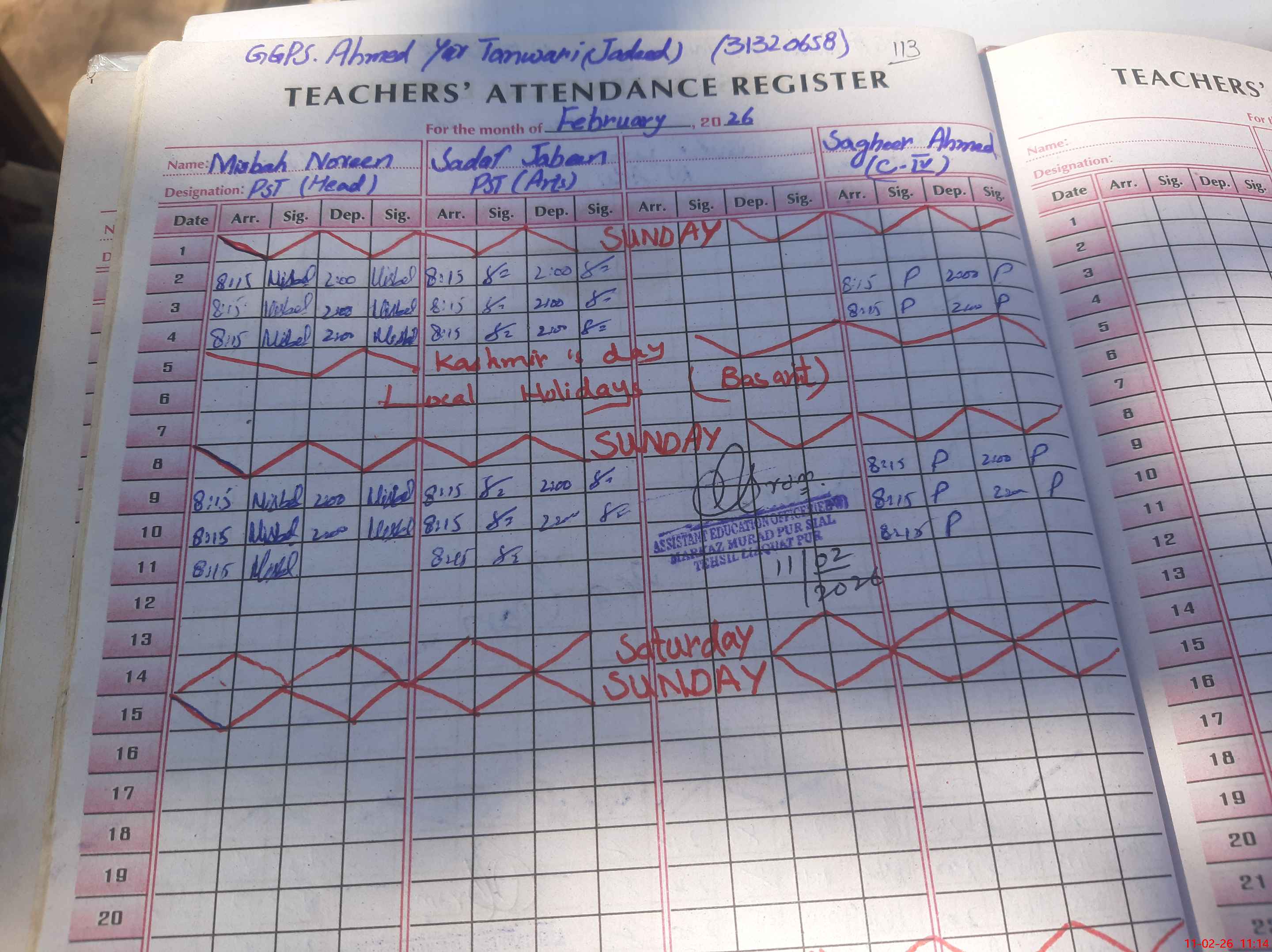 | Name: MI**** NO**** Designation: (School Headmaster's/Headmistress's) PST Phone/Cell Number: 03**** |