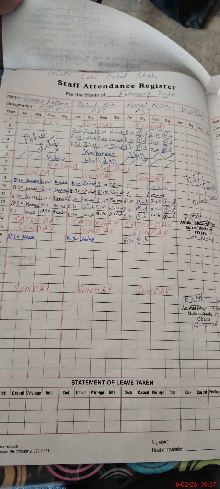 | Name: Ka**** Fa**** Designation: (School Headmaster's/Headmistress's) PST Phone/Cell Number: 03**** |