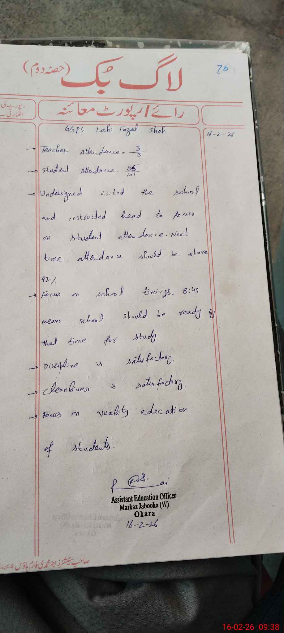 | EMIS Code: 39320707 | Name of School: GGPS LAHI FAZAL SHAH | |||