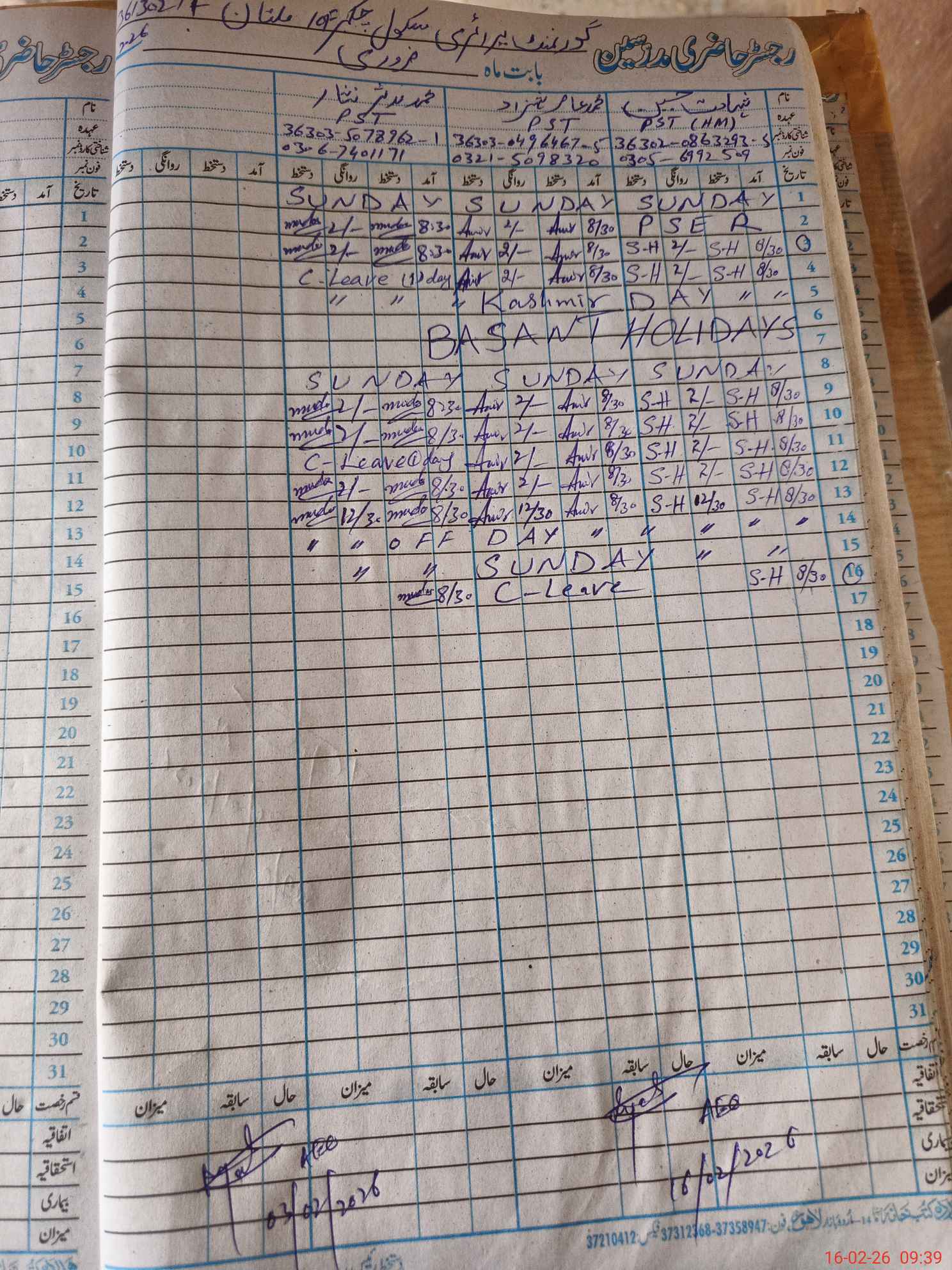 | 36**** | Mu**** Aa**** Sh**** | PST Arts | Regular | 0 | 0 | 0 | 0 | 0 | 0 | 0 | 0 | 0 | Absent (Un-Authorized) |