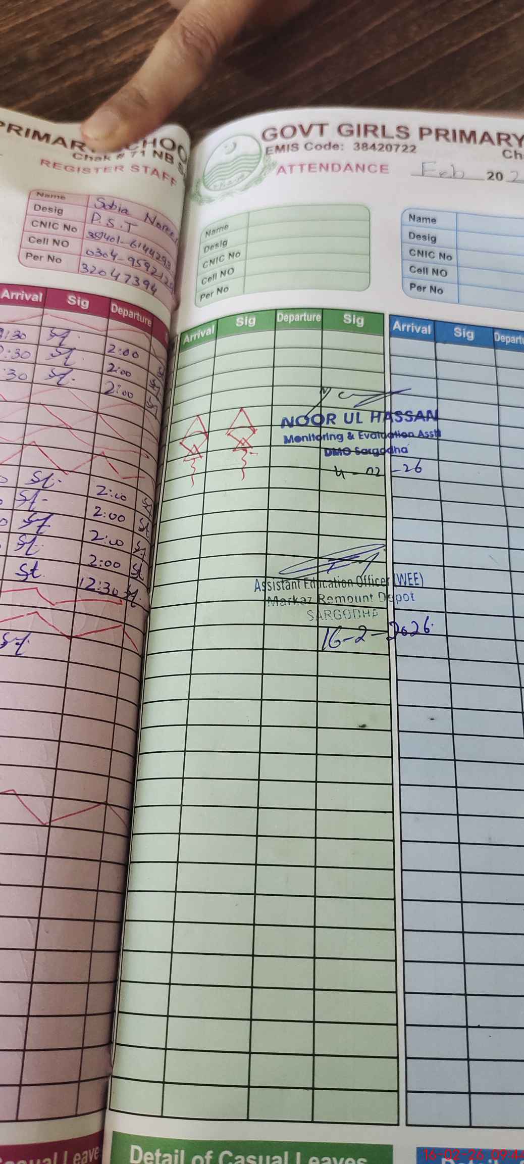 | Name: SA**** AS**** Designation: (School Headmaster's/Headmistress's) PST Phone/Cell Number: 03**** |