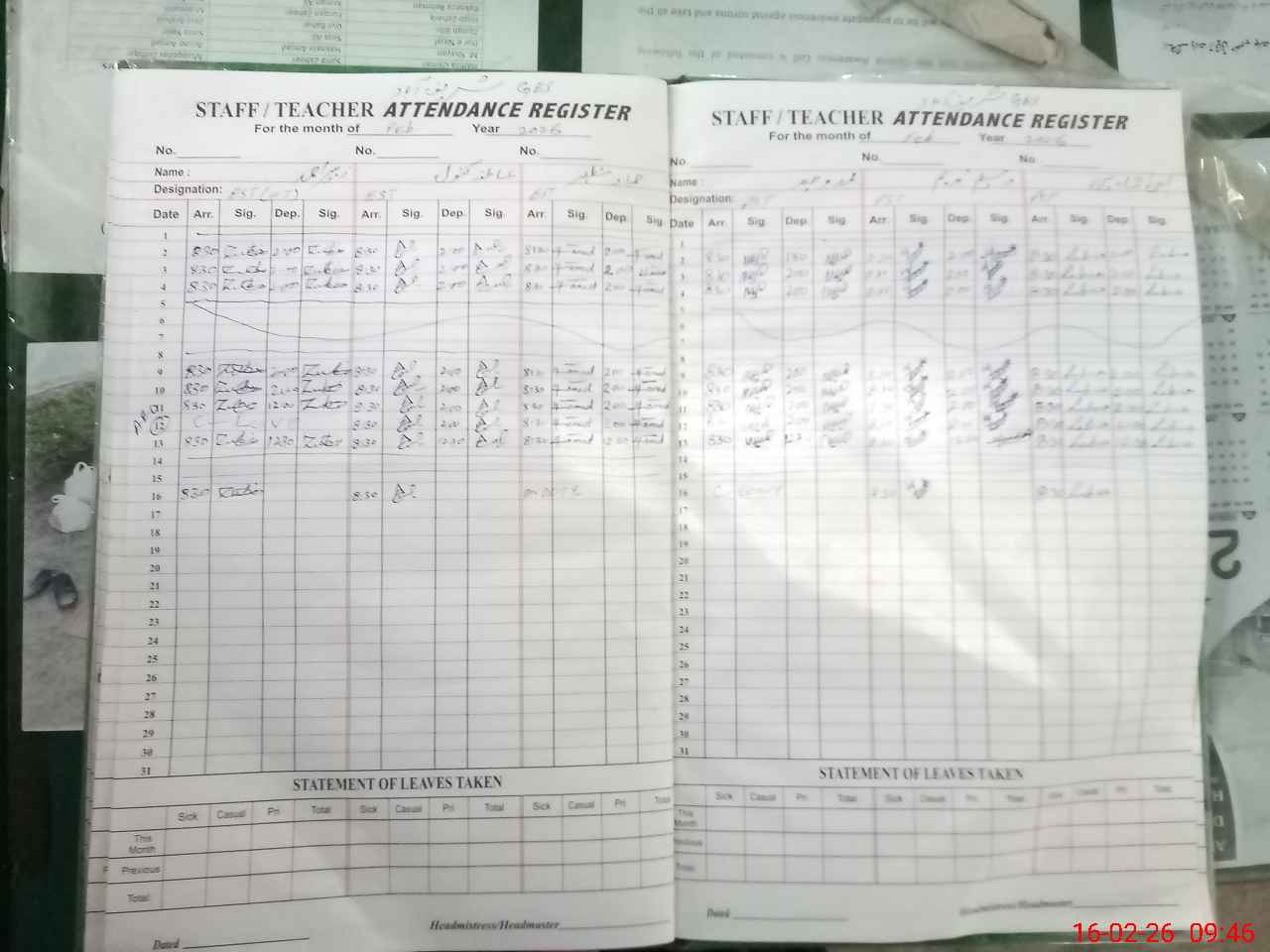 | Attendance Register | Head Teacher | MEA with School | Visit Proof |
