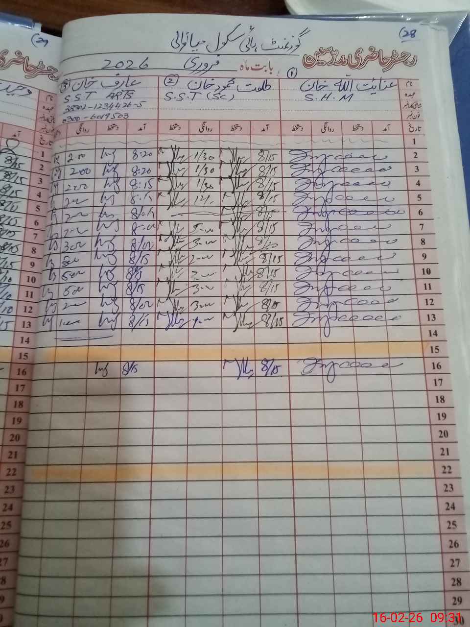 | Name: An**** Ul**** Kh**** Designation: (School Headmaster's/Headmistress's) SR.HM Phone/Cell Number: 03**** |