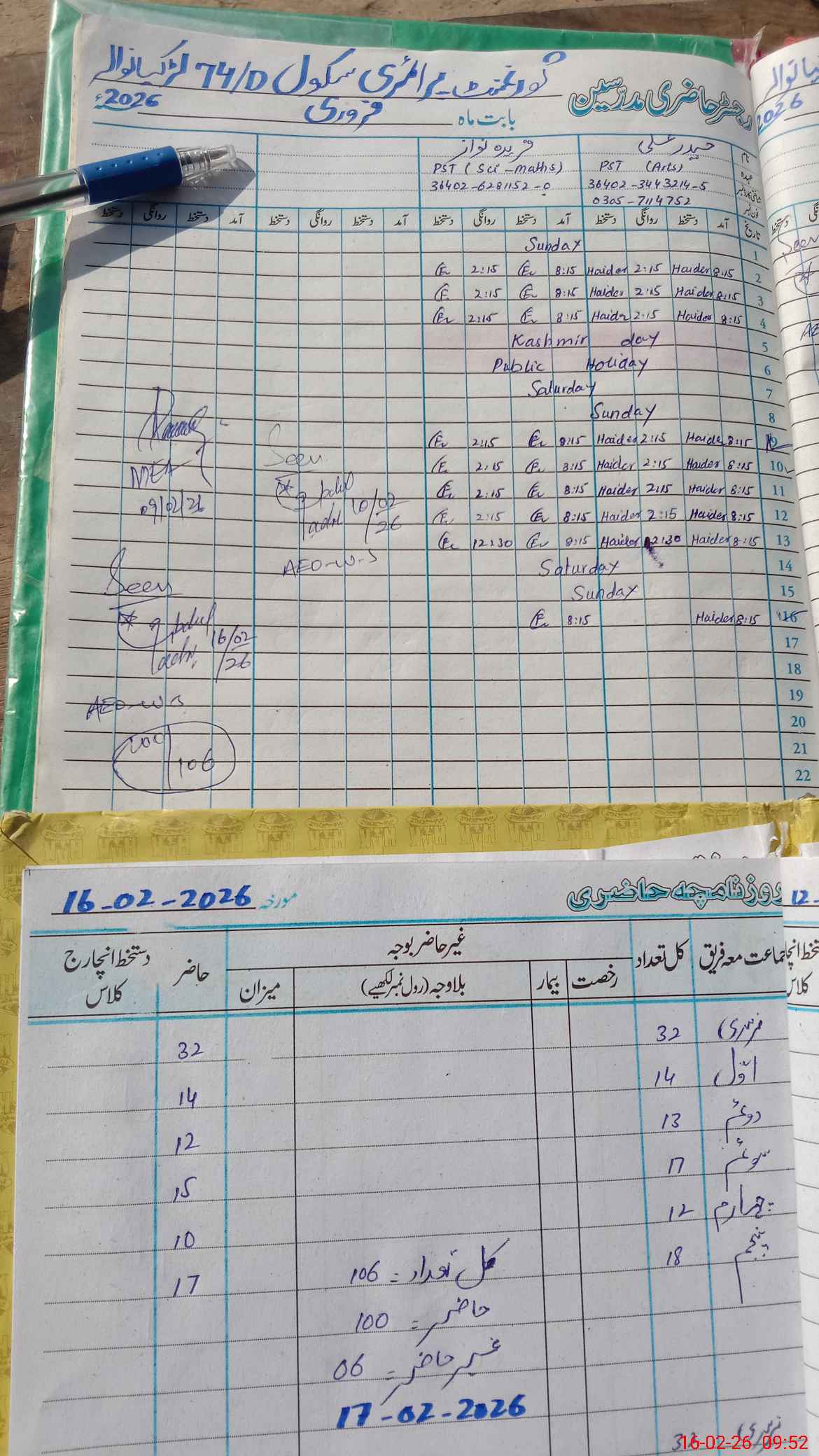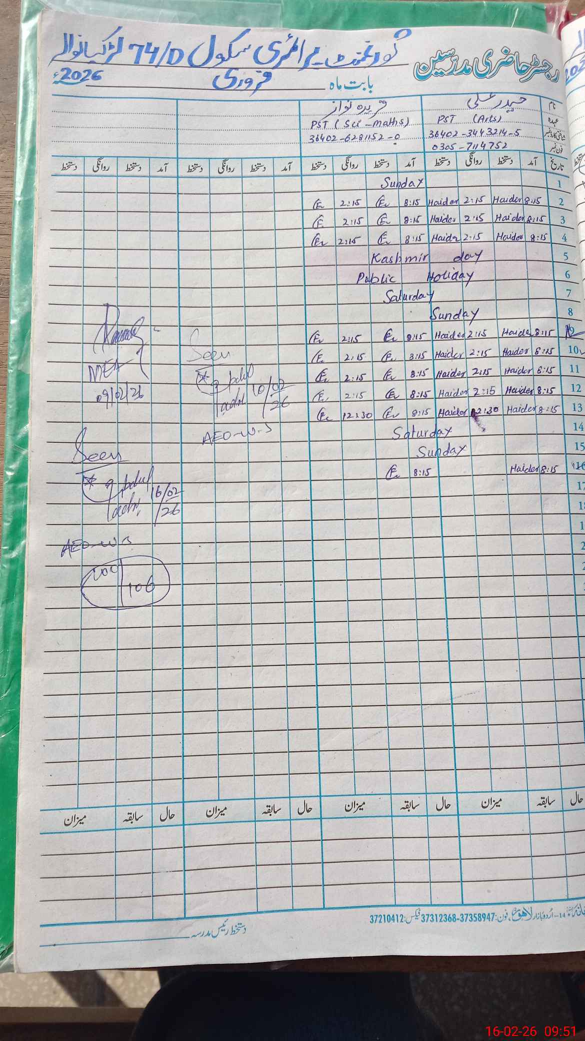 | Name: HA**** AL**** Designation: (School Headmaster's/Headmistress's) PST Phone/Cell Number: 03**** |