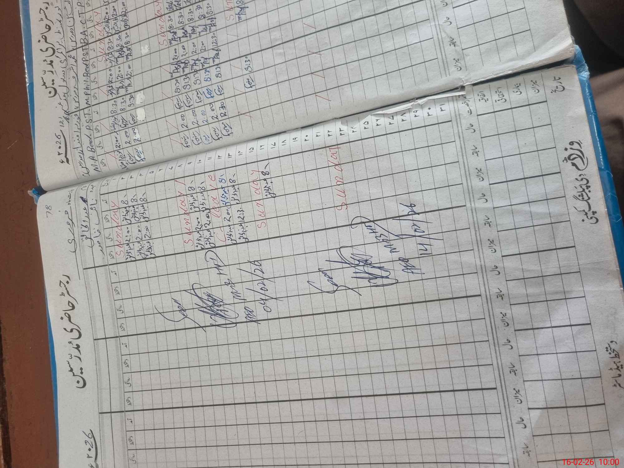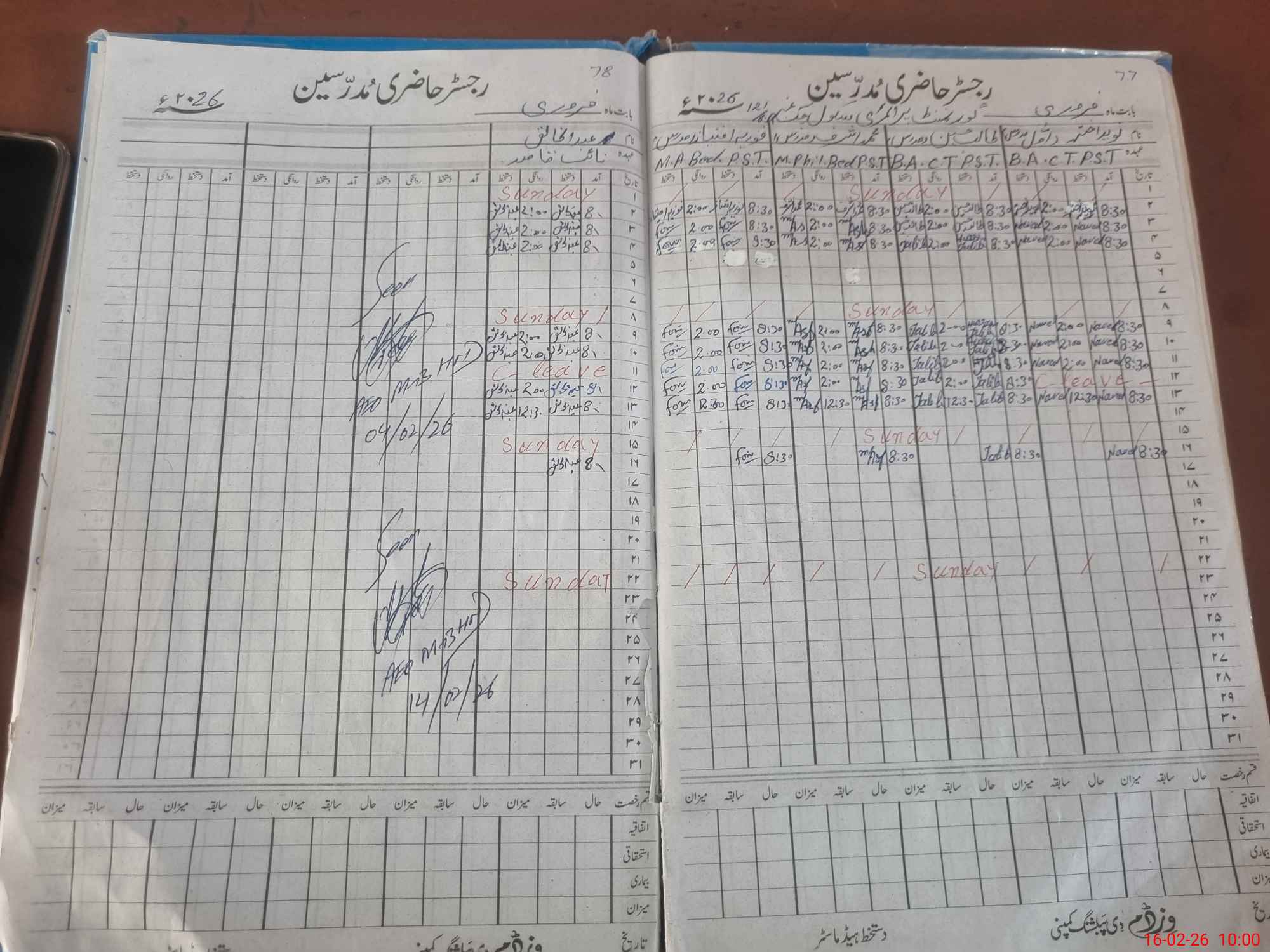 | CNIC | Full Name | Designation | R/C | Absence During Last Calender Month |