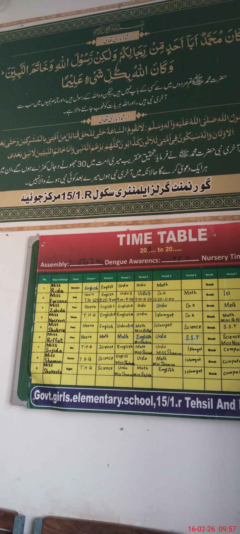 | EMIS Code: 39320771 | Name of School: GGES CHAK NO. 15/1-R | |||