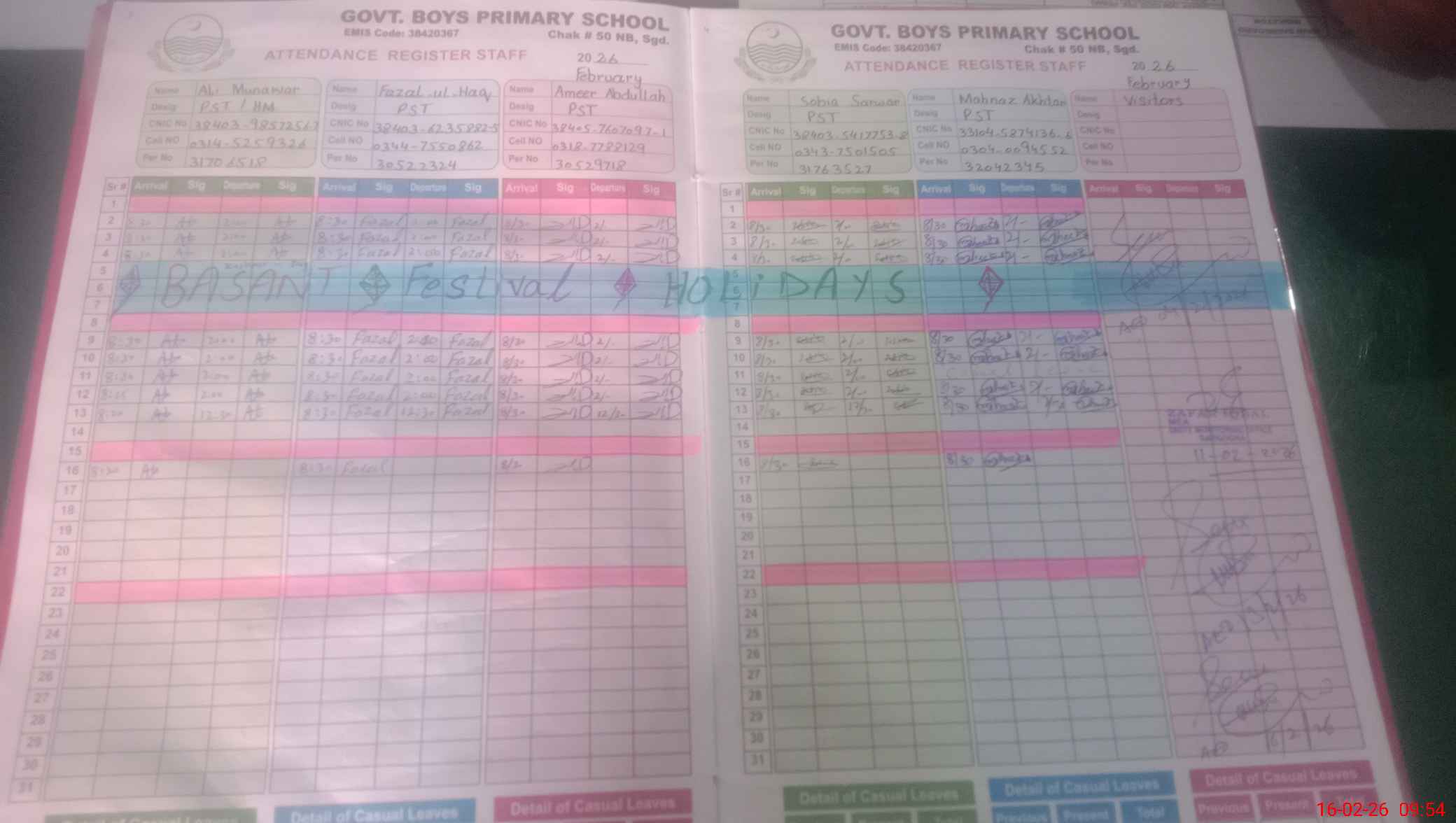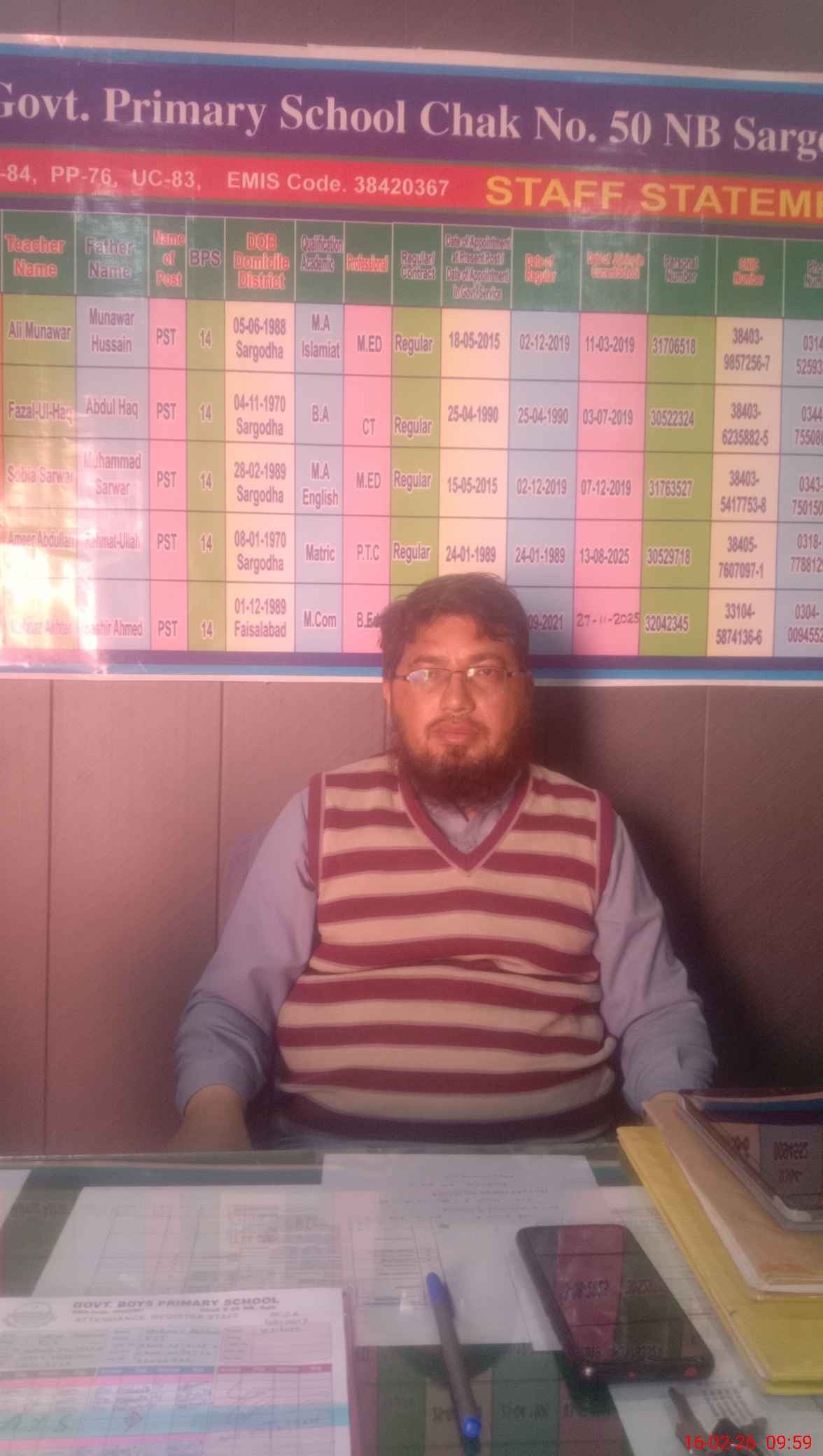 | Name: Al**** Mu**** Designation: (School Headmaster's/Headmistress's) PST HT IC Phone/Cell Number: 03**** |