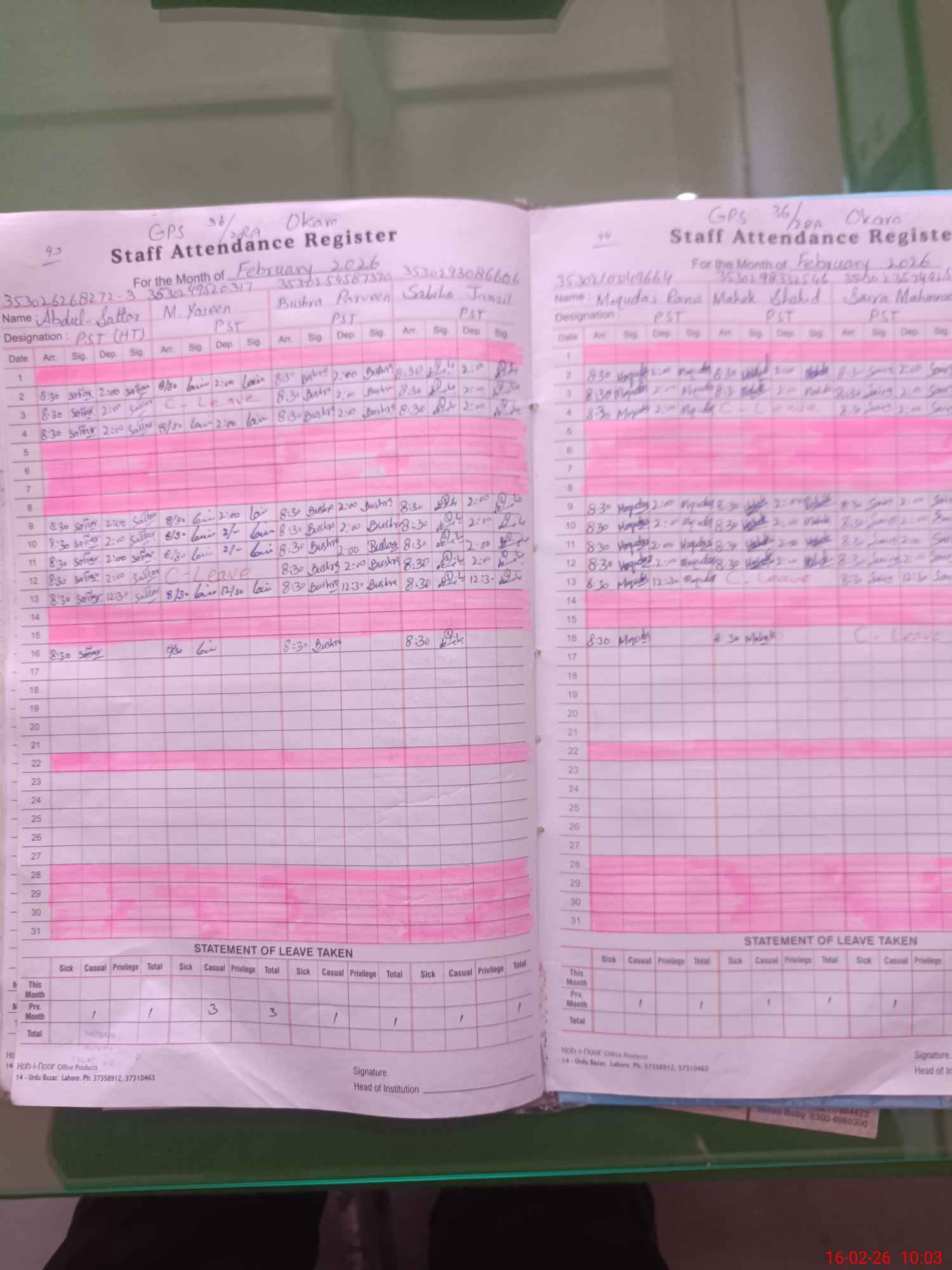 | Name: Ab**** Sa**** Designation: (School Headmaster's/Headmistress's) PST Phone/Cell Number: 03**** |