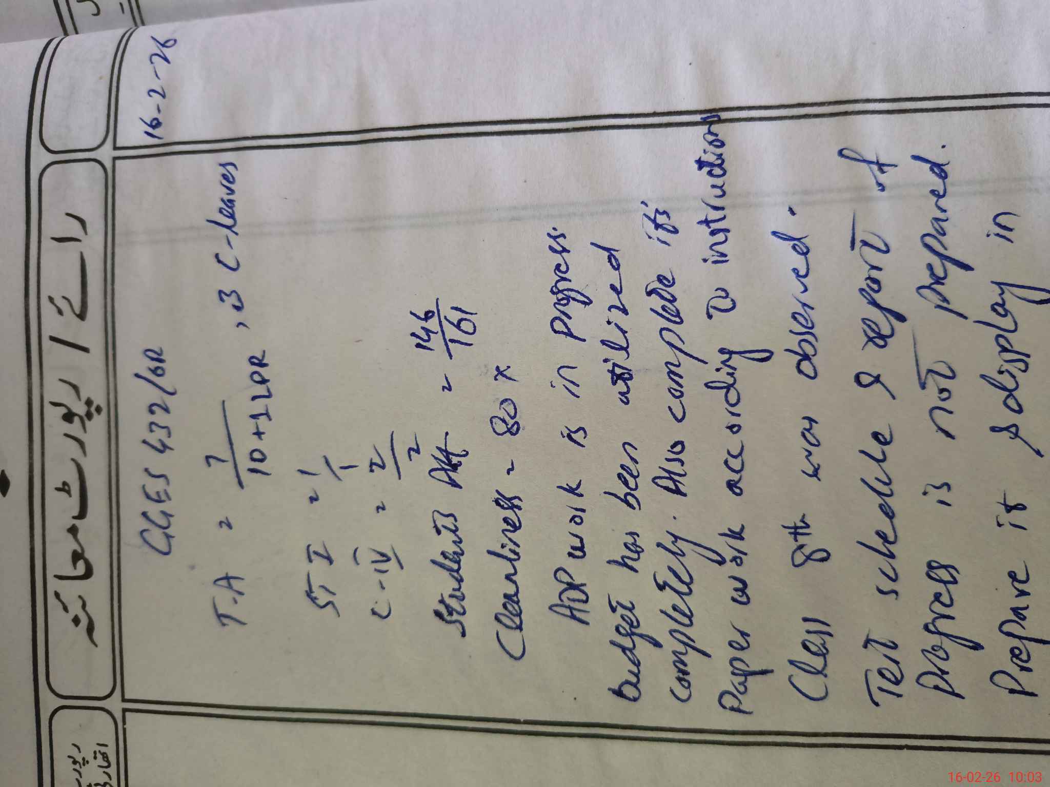 | District: BAHAWALNAGAR | Tehsil: HAROONABAD | Markaz: HDN-18-FEMALE | Level: Middle | |