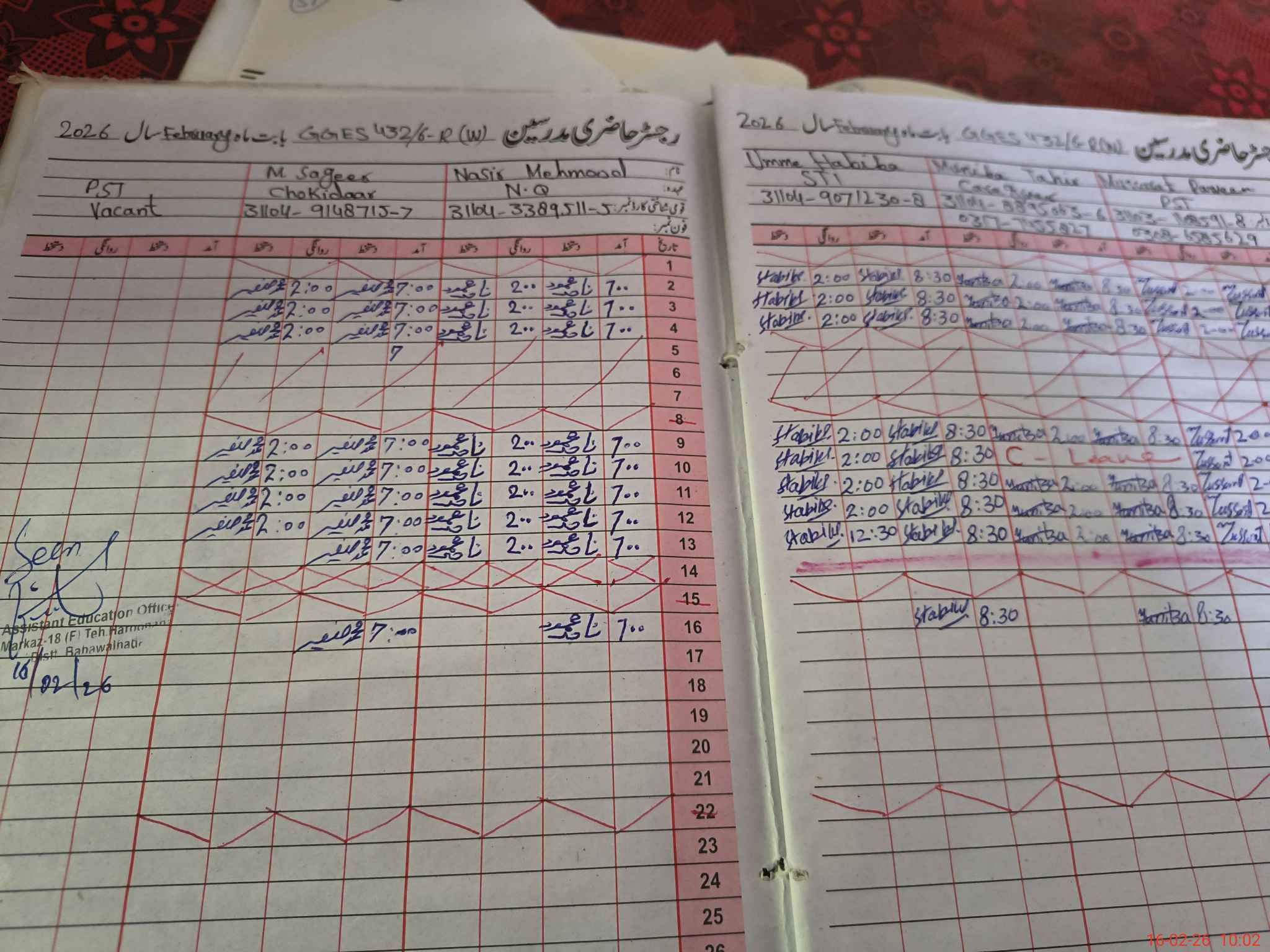 | Name: Sh**** Pe**** Designation: (School Headmaster's/Headmistress's) EST Phone/Cell Number: 03**** |