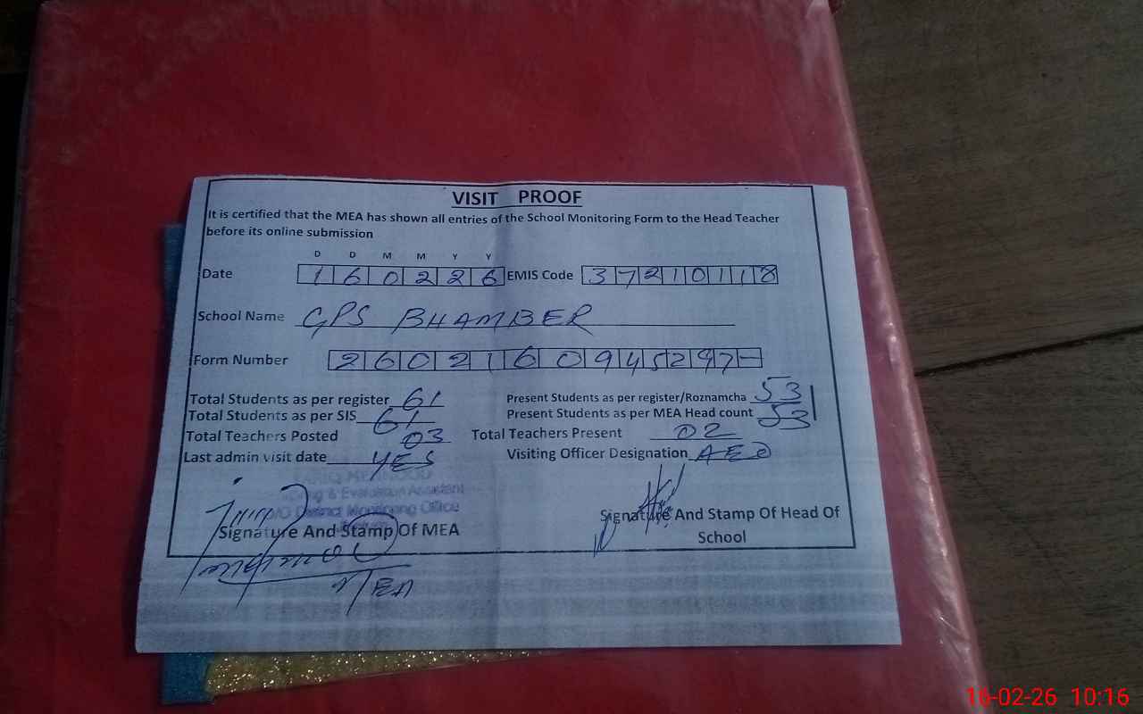| EMIS Code: 37210118 | Name of School: GPS BHAMBER | |||