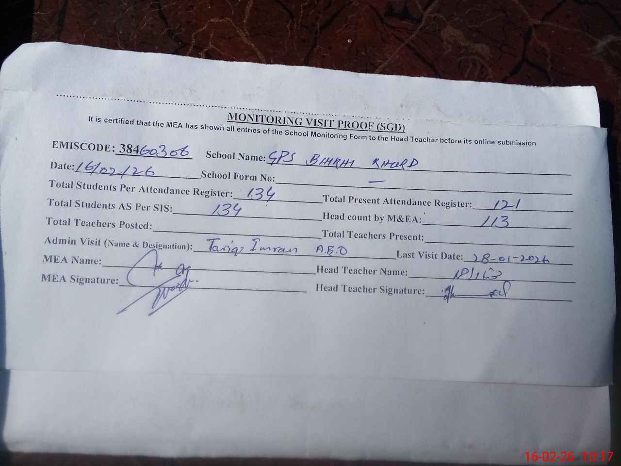 | EMIS Code: 38460306 | Name of School: GPS BHIKHI KHURD | |||