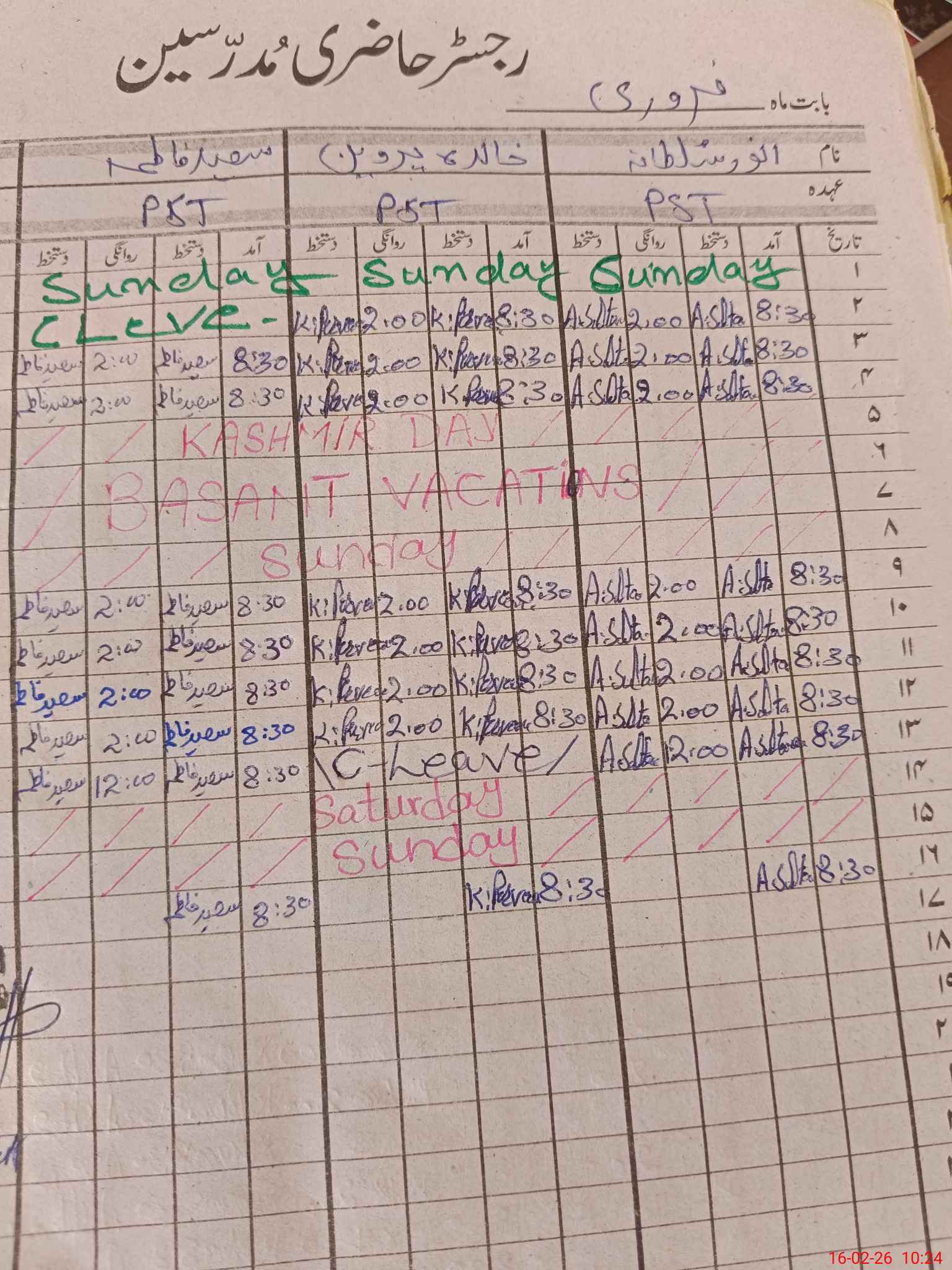 | Leave | Duty | Absent | Maternity | Medical | Ex- Pak |
