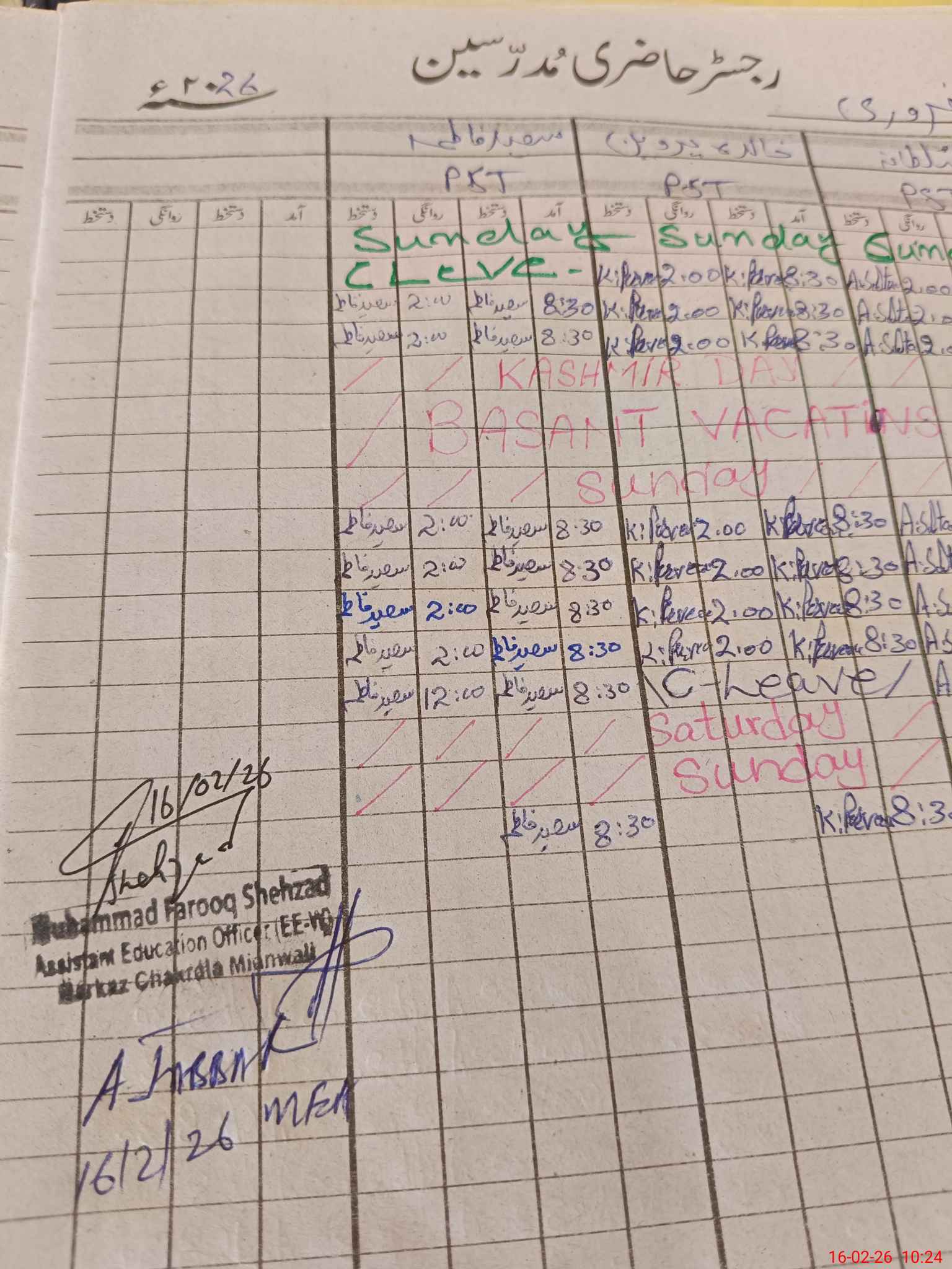 | CNIC | Full Name | Designation | R/C | Absence During Last Calender Month |