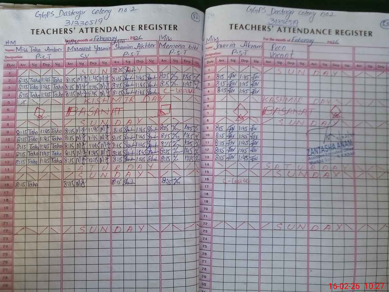 | 31**** | Ja**** Ak**** | PST Science/Maths | Regular | 0 | 0 | 0 | 0 | 0 | 0 | 0 | 0 | 0 | Casual |