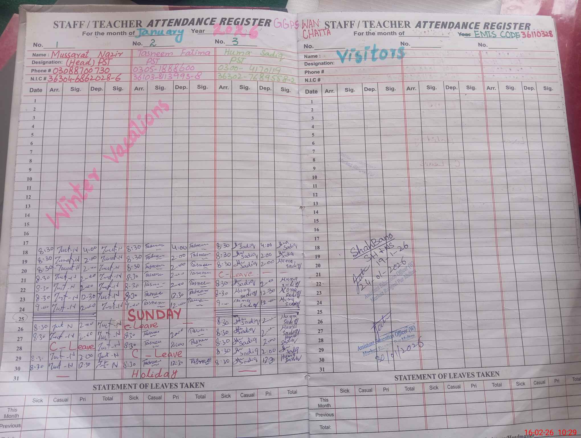 | EMIS Code: 36110328 | Name of School: GGPS WAN CHATTA BAHAWALPUR ROAD MULTAN | |||