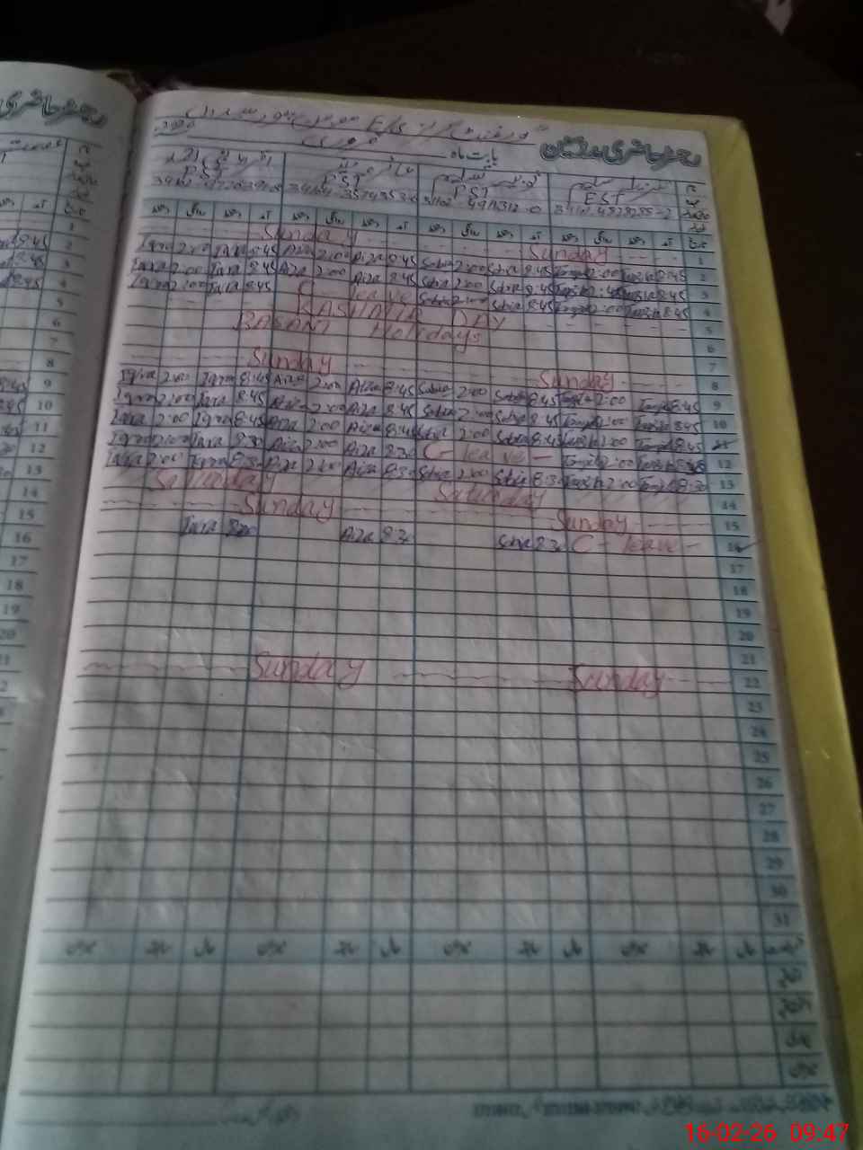 | CNIC | Full Name | Designation | R/C | Absence During Last Calender Month |