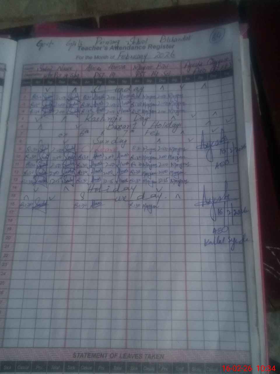 | District: RAWALPINDI | Tehsil: KALLAR SYEDAN | Markaz: BESHANDOTE - FEMALE | Level: Primary | |