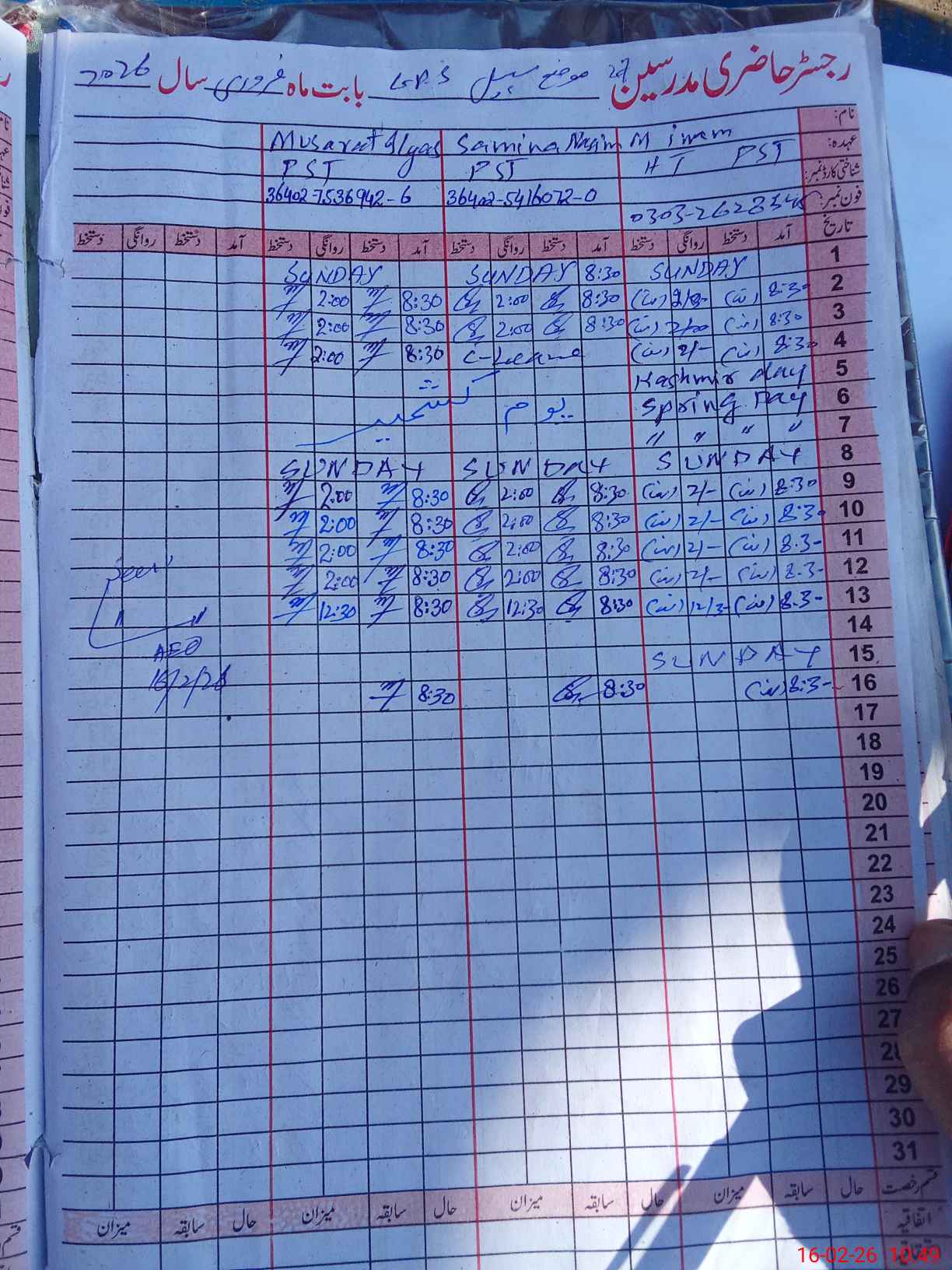 | Name: MU**** IN**** Designation: (School Headmaster's/Headmistress's) PST Phone/Cell Number: 03**** |