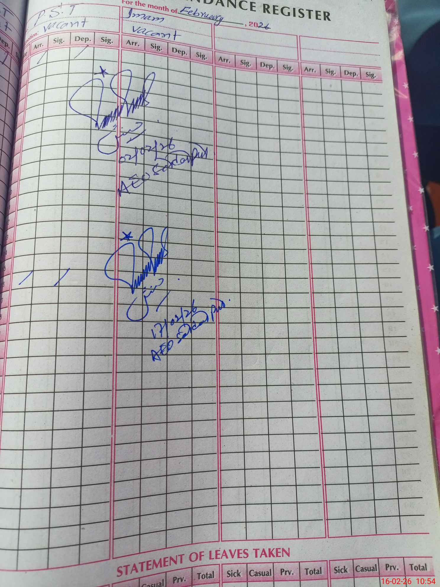 | Leave | Duty | Absent | Maternity | Medical | Ex- Pak |