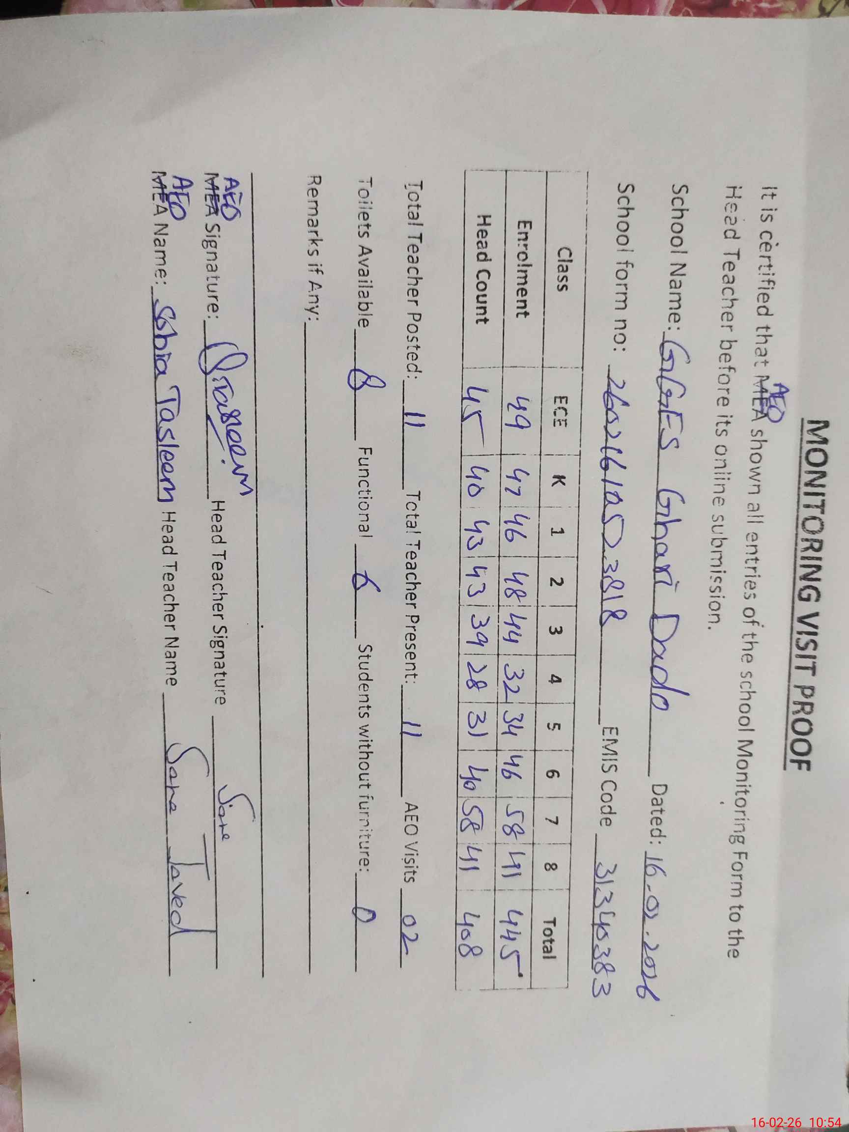 | EMIS Code: 31340383 | Name of School: GGES GHARI DADO | |||