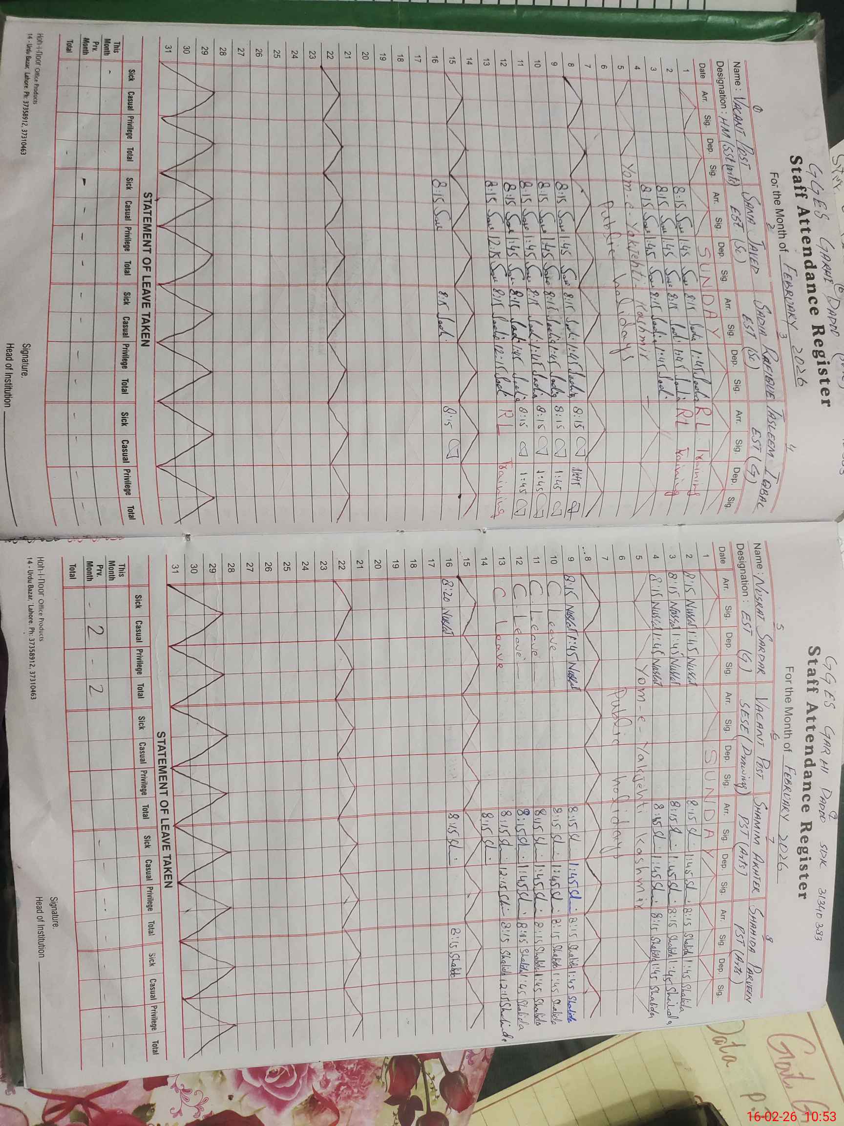 | Leave | Duty | Absent | Maternity | Medical | Ex- Pak |