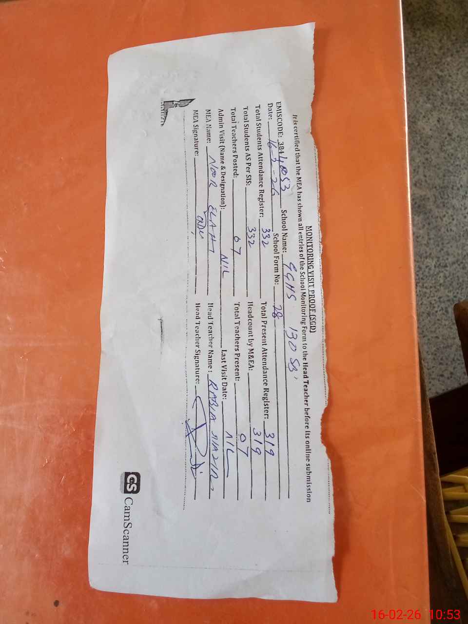 | Certified that this School was Inspected by the Undersigned MEA/DMO Today and the Information Stated Above is as Per Record. | |||||