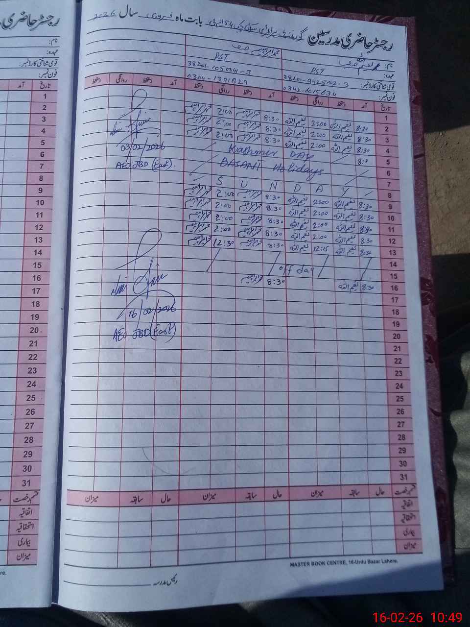 | Name: Mu**** Ak**** Designation: (School Headmaster's/Headmistress's) PST Phone/Cell Number: 03**** |