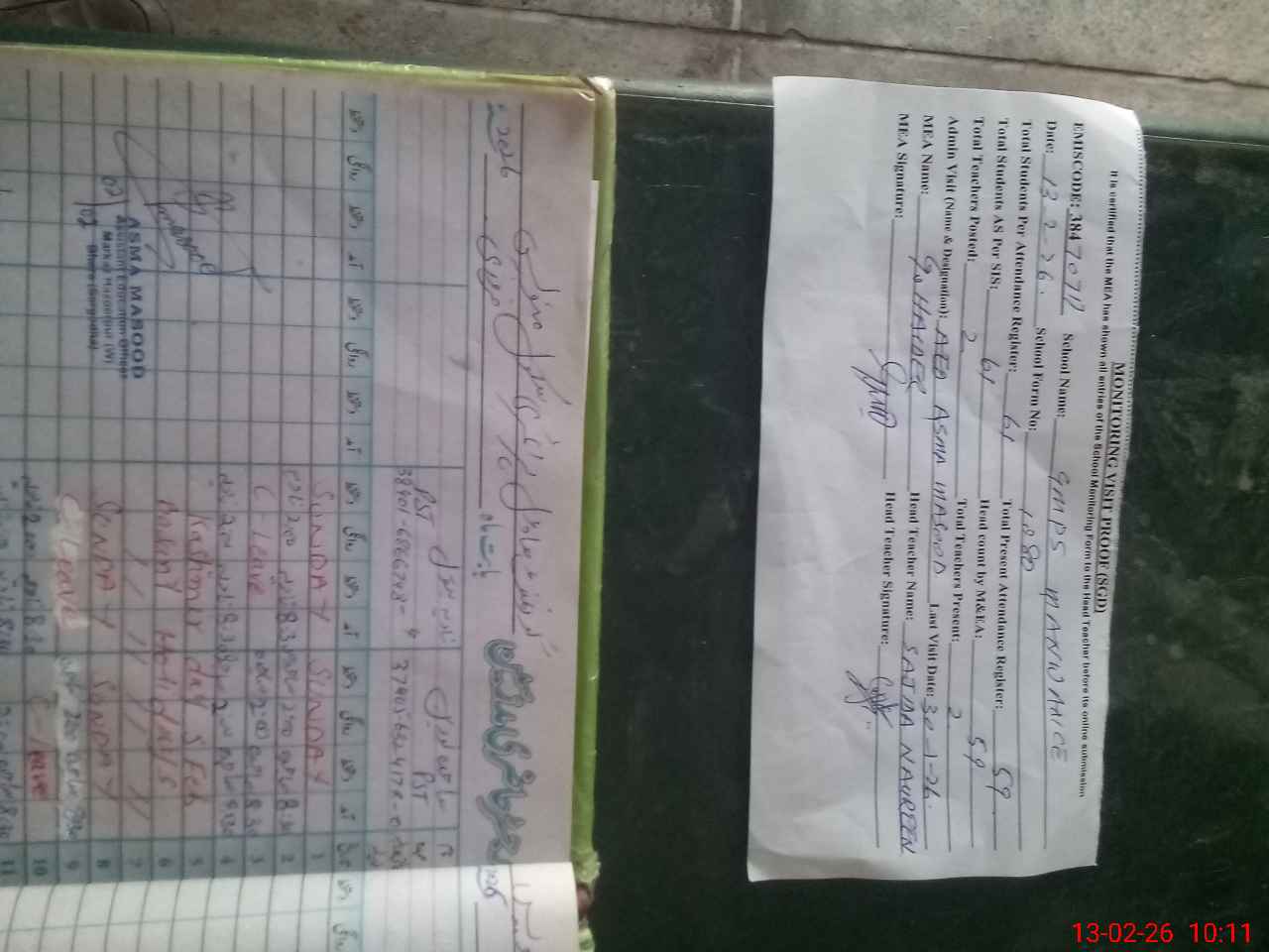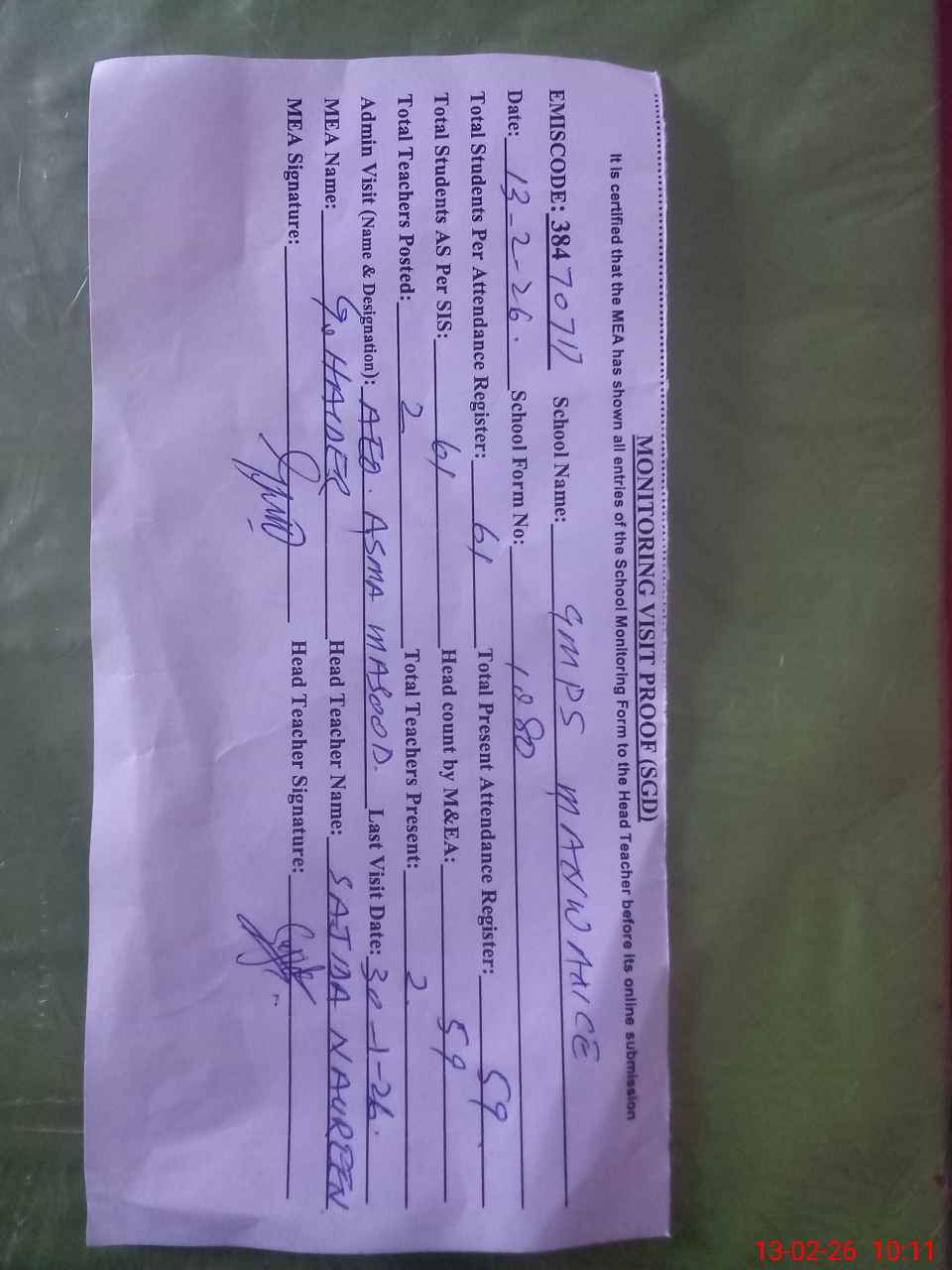 | Certified that this School was Inspected by the Undersigned MEA/DMO Today and the Information Stated Above is as Per Record. | |||||