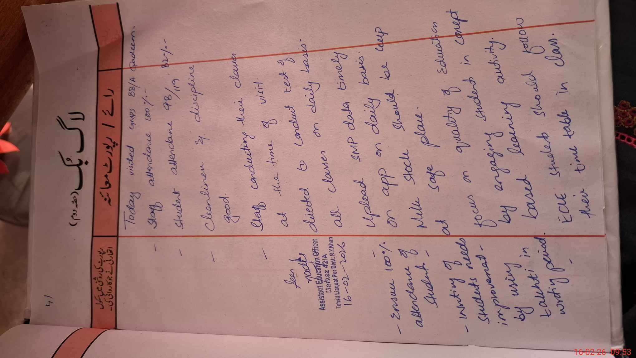 | Certified that this School was Inspected by the Undersigned MEA/DMO Today and the Information Stated Above is as Per Record. | |||||