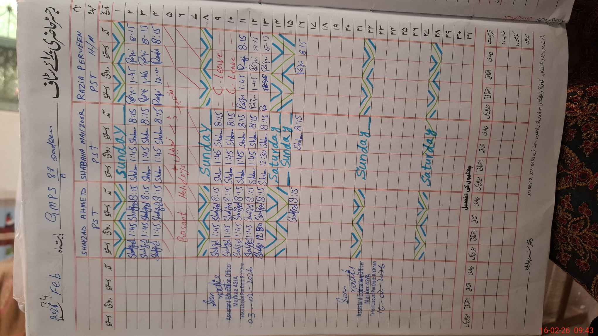| Name: RA**** PA**** Designation: (School Headmaster's/Headmistress's) PST Phone/Cell Number: 03**** |