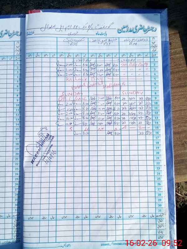 | Name: ZU**** AL**** SH**** Designation: (School Headmaster's/Headmistress's) PST Phone/Cell Number: 03**** |