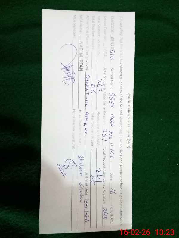 | EMIS Code: 38410510 | Name of School: GGES CHAK NO.11 ML | |||